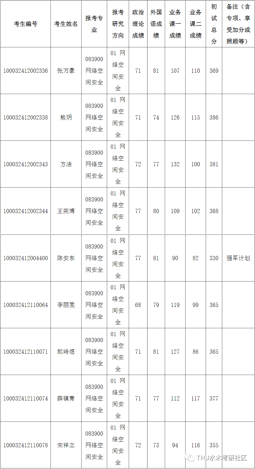 清华大学网络研究院2022年全国硕士研究生招生考试入围复试的名单已确定,现公布如下: