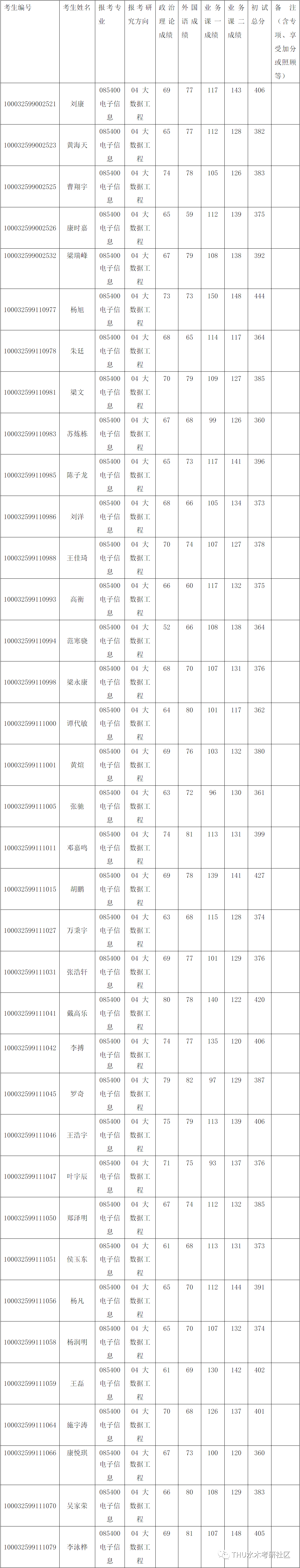 清华大学深圳国际研究生院2022年全国硕士研究生招生考试电子信息(大数据工程)项目入围复试的名单已确定,现公布如下: