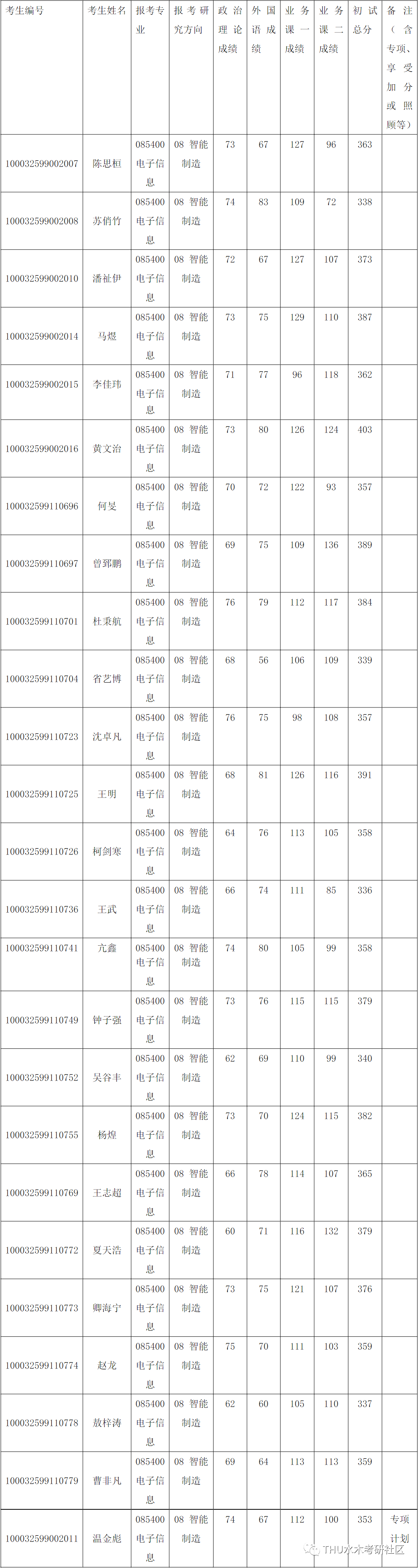 2022年清华大学深圳国际研究生院全国硕士研究生招生考试电子信息(智能制造)入围复试名单公示