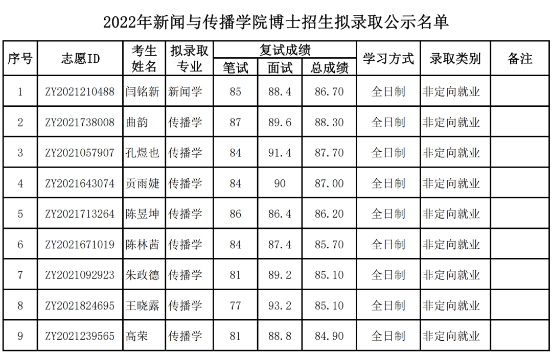 北京大学考博辅导班:北京大学2022年新闻与传播学院博士招生拟录取公示名单