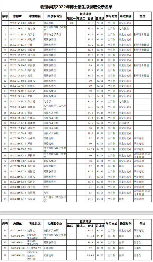 北京大学考博辅导班:2022年北京大学物理学院博士招生拟录取名单公示
