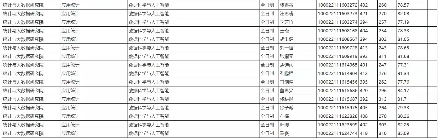 2022年中国人民大学统计与大数据研究院硕士研究生招生拟录取名单