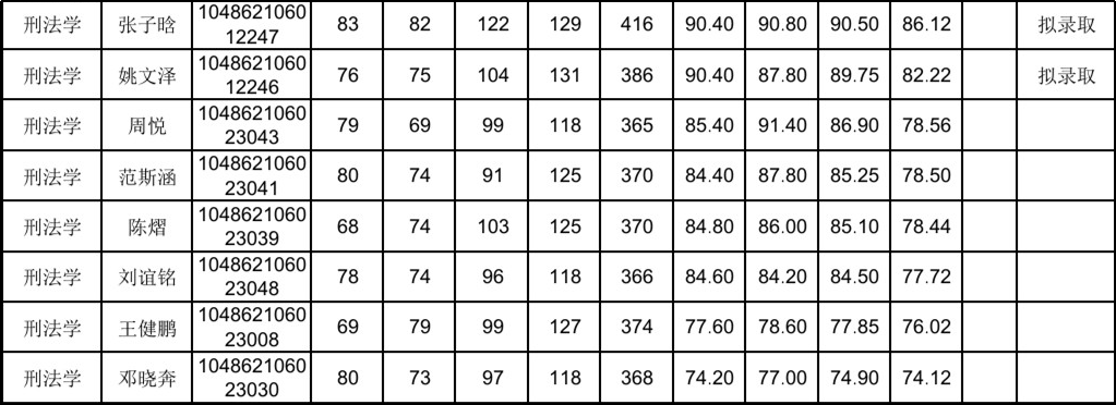 刑法过线人数:9,最终录取人数:7