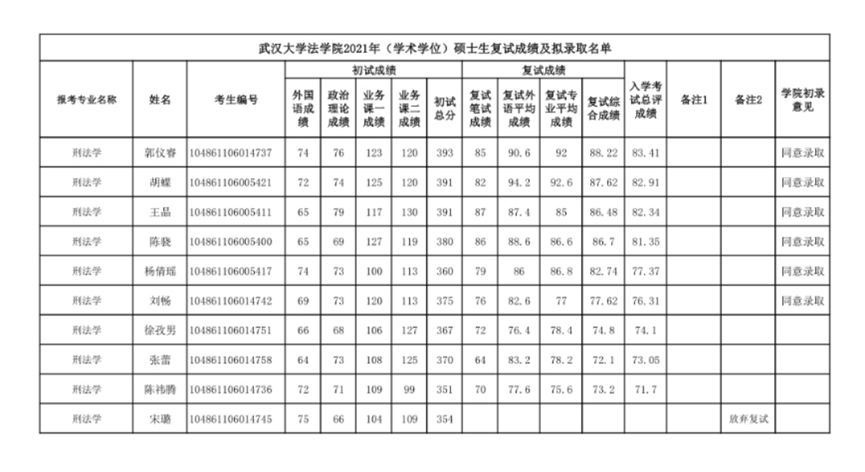 武大刑法近三年的录取情况如下: