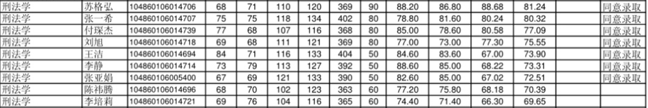 刑法过线人数:10,最终录取人数:6