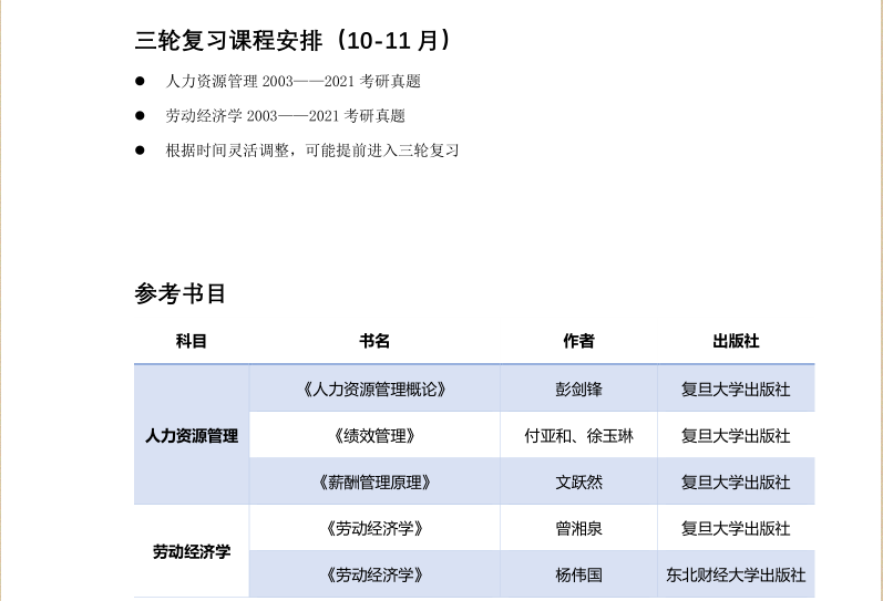 中国人民大学人力资源管理专业考研专业课803劳动经济学综合辅导课程授课计划大纲