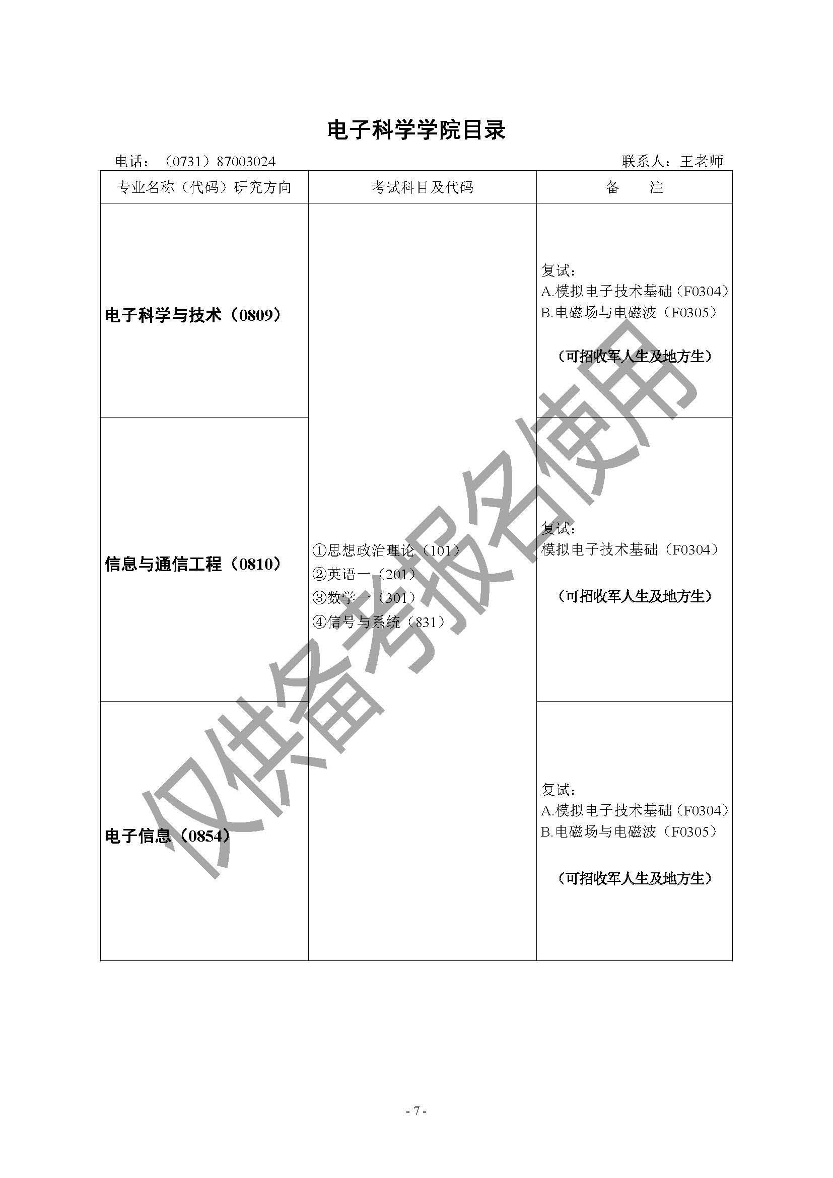 2023年国防科技大学考研电子科学学院硕士研究生招生专业目录、考试科目