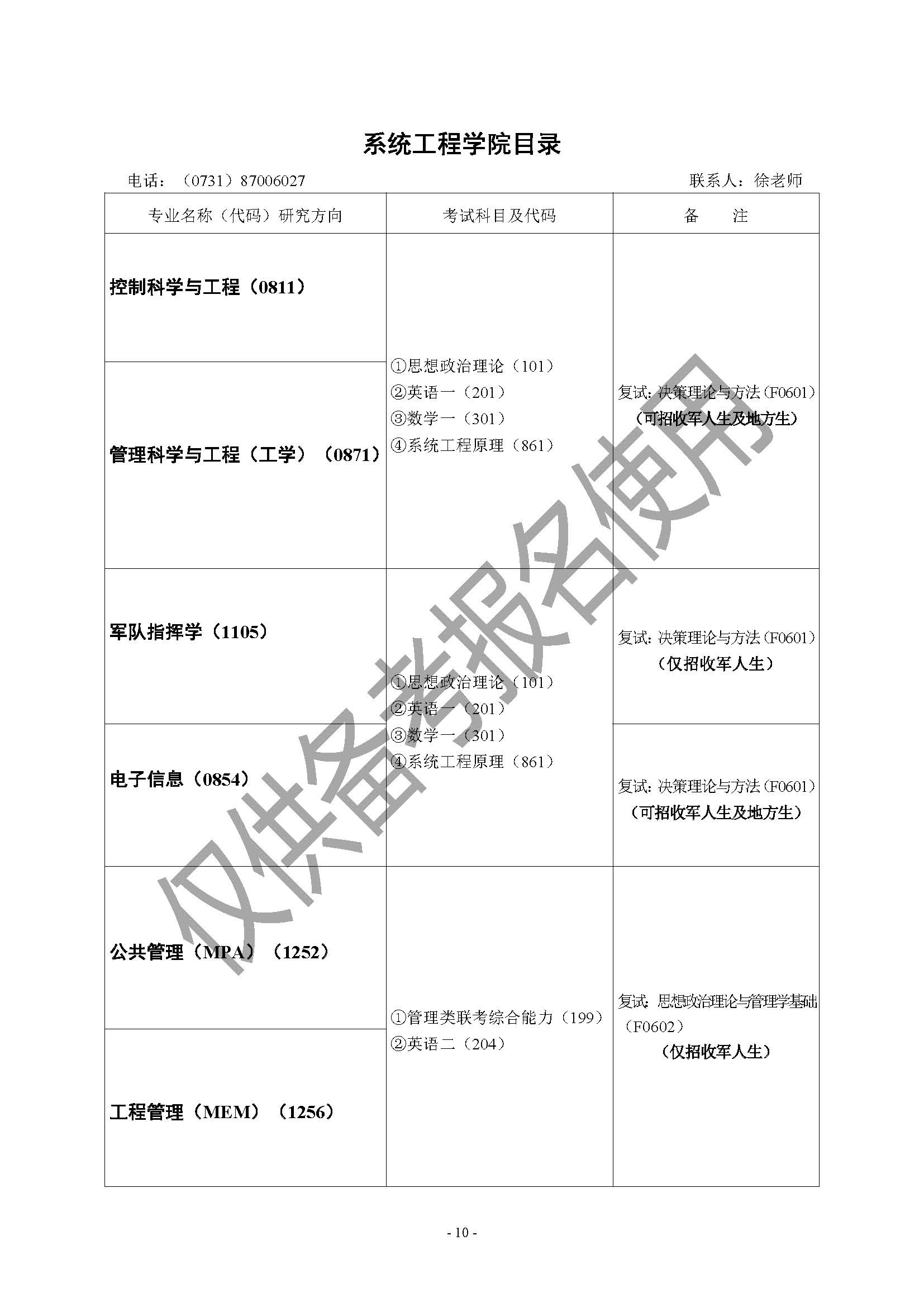 2023年国防科技大学考研系统工程学院硕士研究生招生专业目录、考试科目