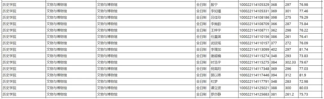 各项复试成绩均合格的,按报考专业(考古学、中国史、世界史、文物与博物馆)的加权总成绩,从高分到低分依序排列,择优录取。
