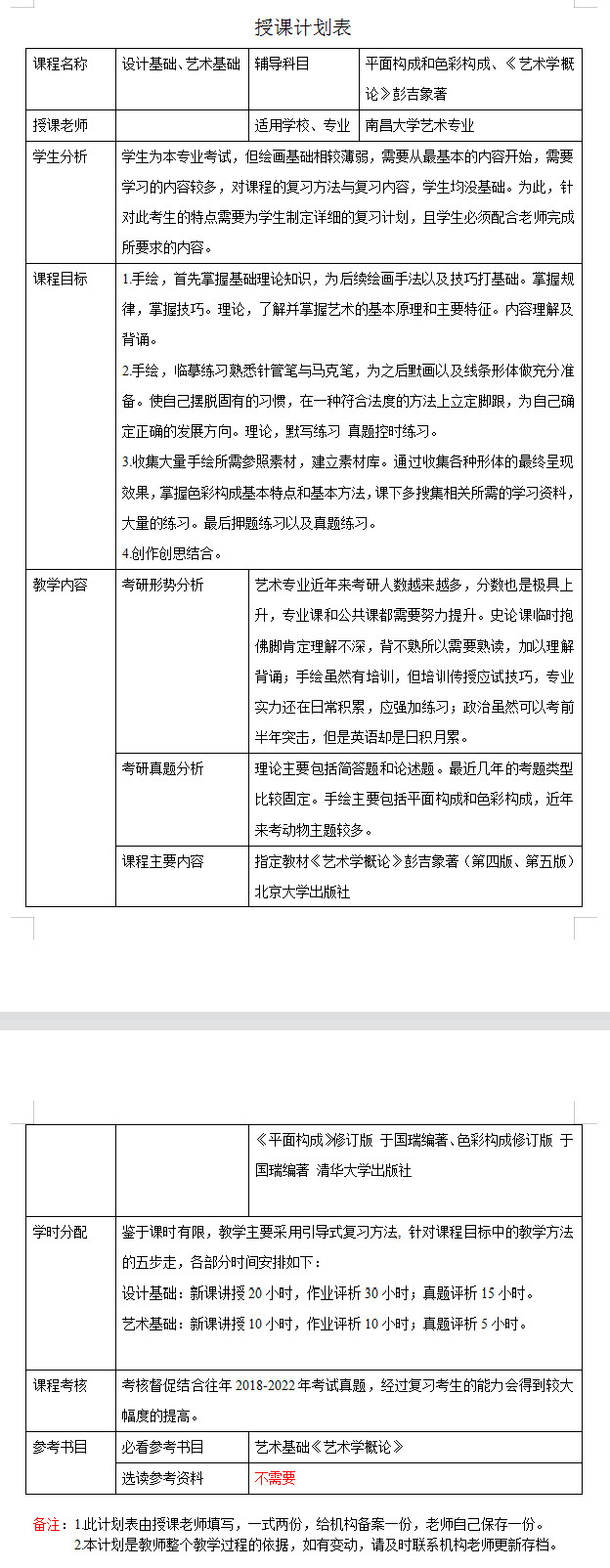 新祥旭考研一对一:2023年南昌大学艺术专硕考研一对一辅导授课计划