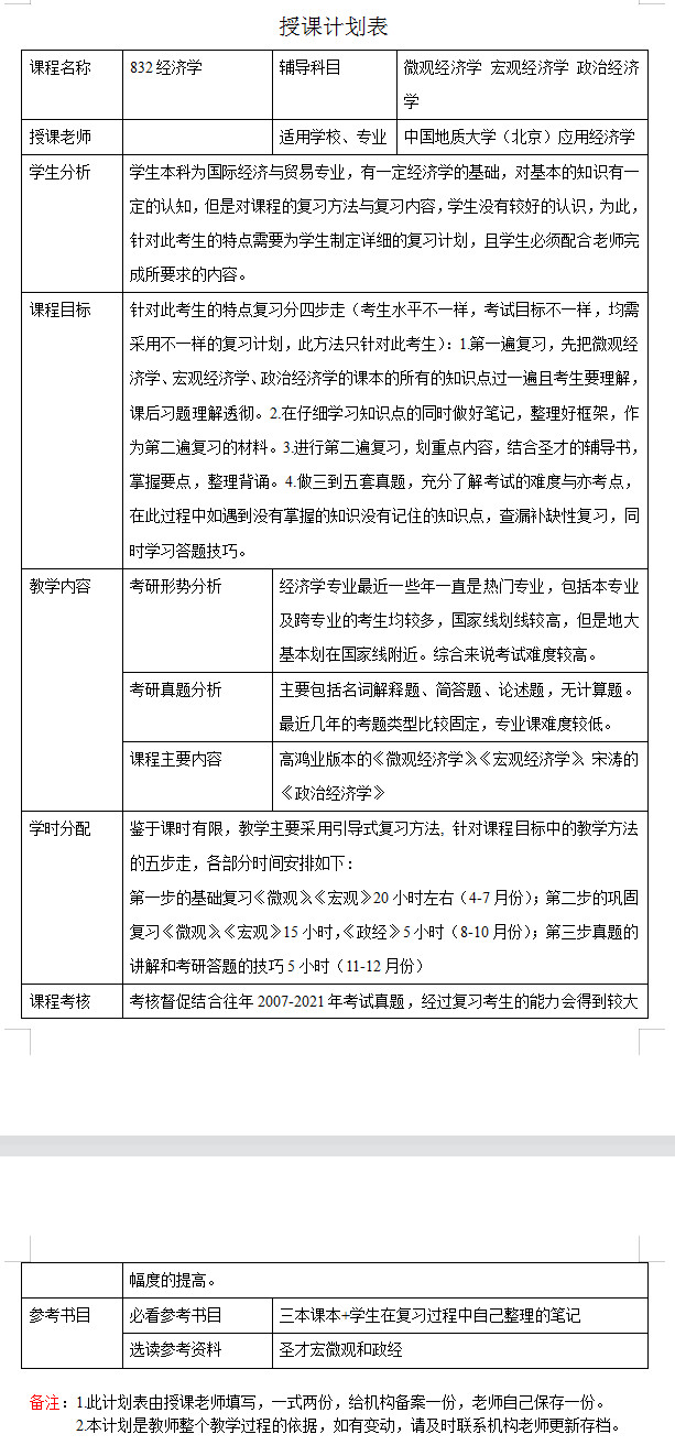 新祥旭考研一对一:2023年中国地质大学(北京)应用经济学考研一对一辅导授课计划