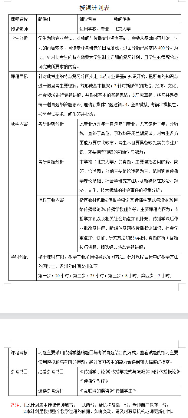 新祥旭考研一对一:2023年北京大学新闻与传播考研一对一辅导授课计划