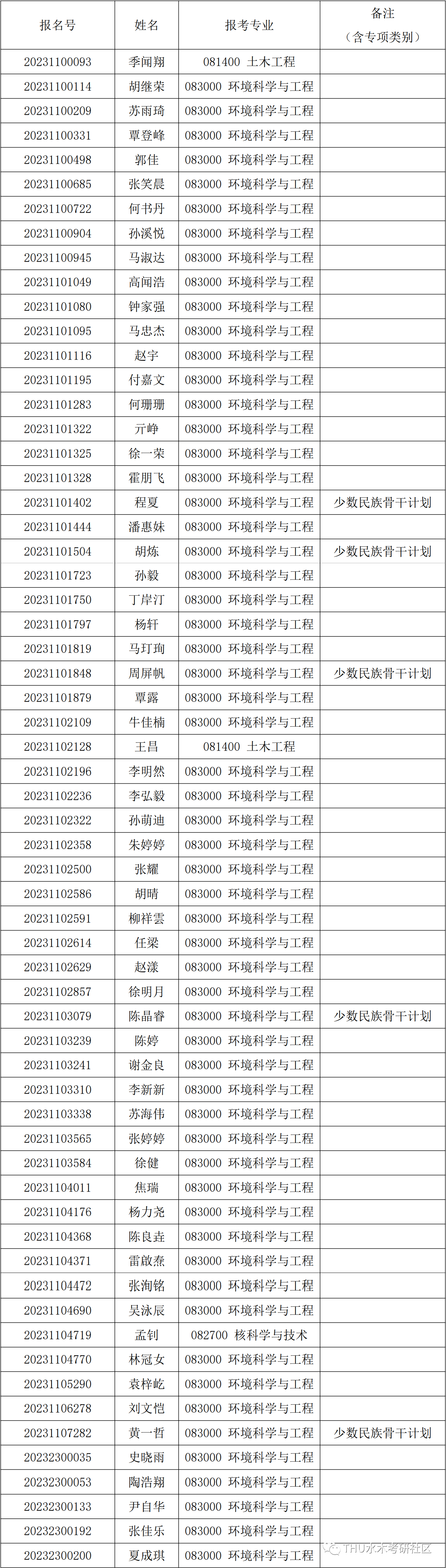 清华大学环境学院2023年招收公开招考招考博士入围综合考核的名单已确定,现公布如下: