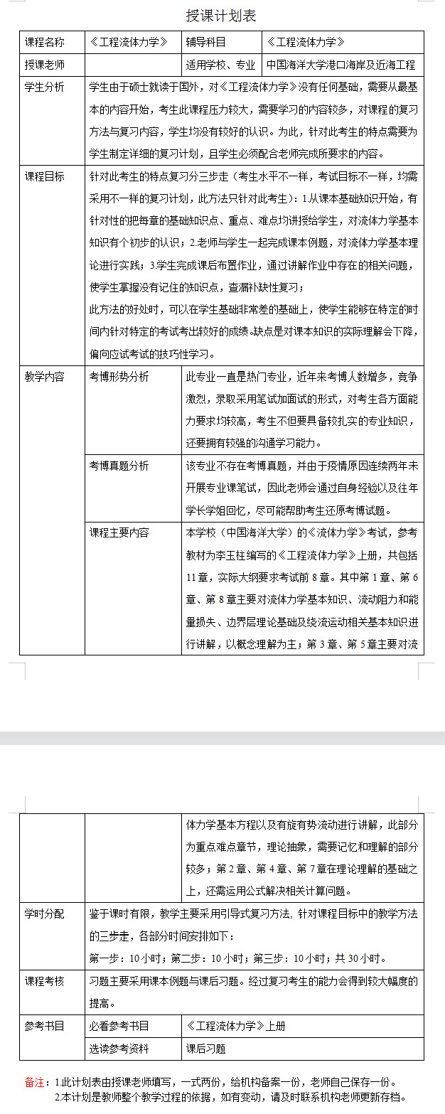 新祥旭考研一对一:2023年中国海洋大学港口海岸及近海工程考研工程流体力学一对一辅导授课计划