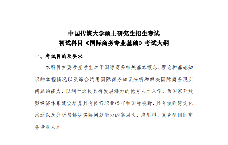 中国传媒大学2023年硕士研究生招生考试初试科目《434国际商务专业基础》考试大纲