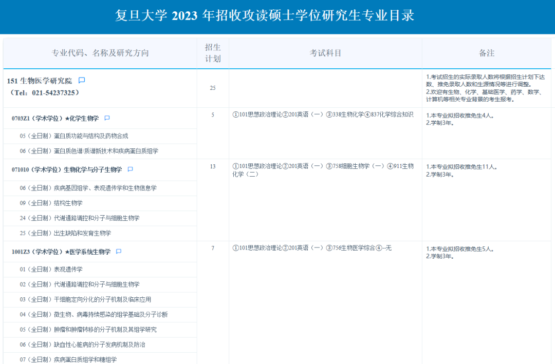复旦大学考研辅导班:2023年复旦大学生物医学研究院硕士研究生专业目录