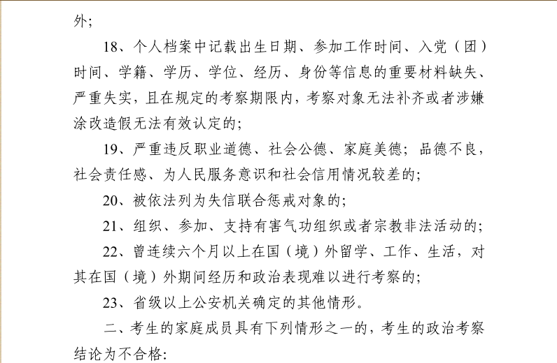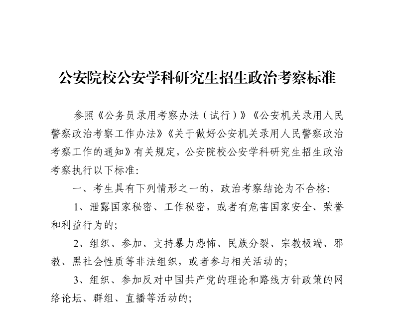 中国人民公安大学2023年硕士研究生招生政治考察标准