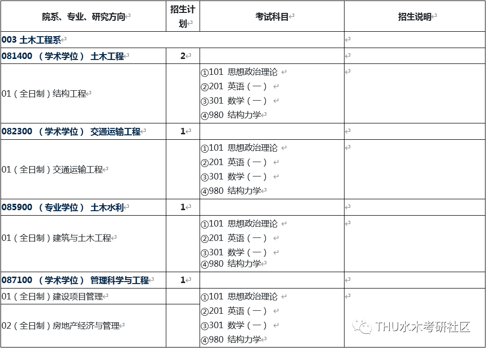 2023年清华大学土木工程系硕士研究生招生专业目录、招生人数