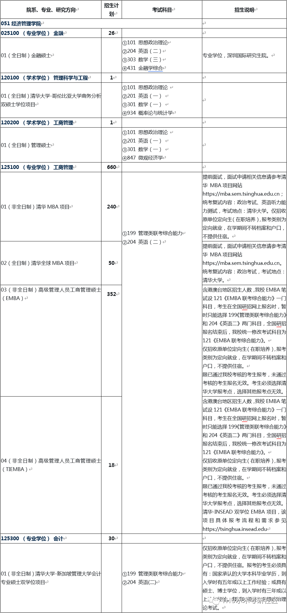 2023年清华大学经济管理学院硕士研究生招生专业目录、招生人数