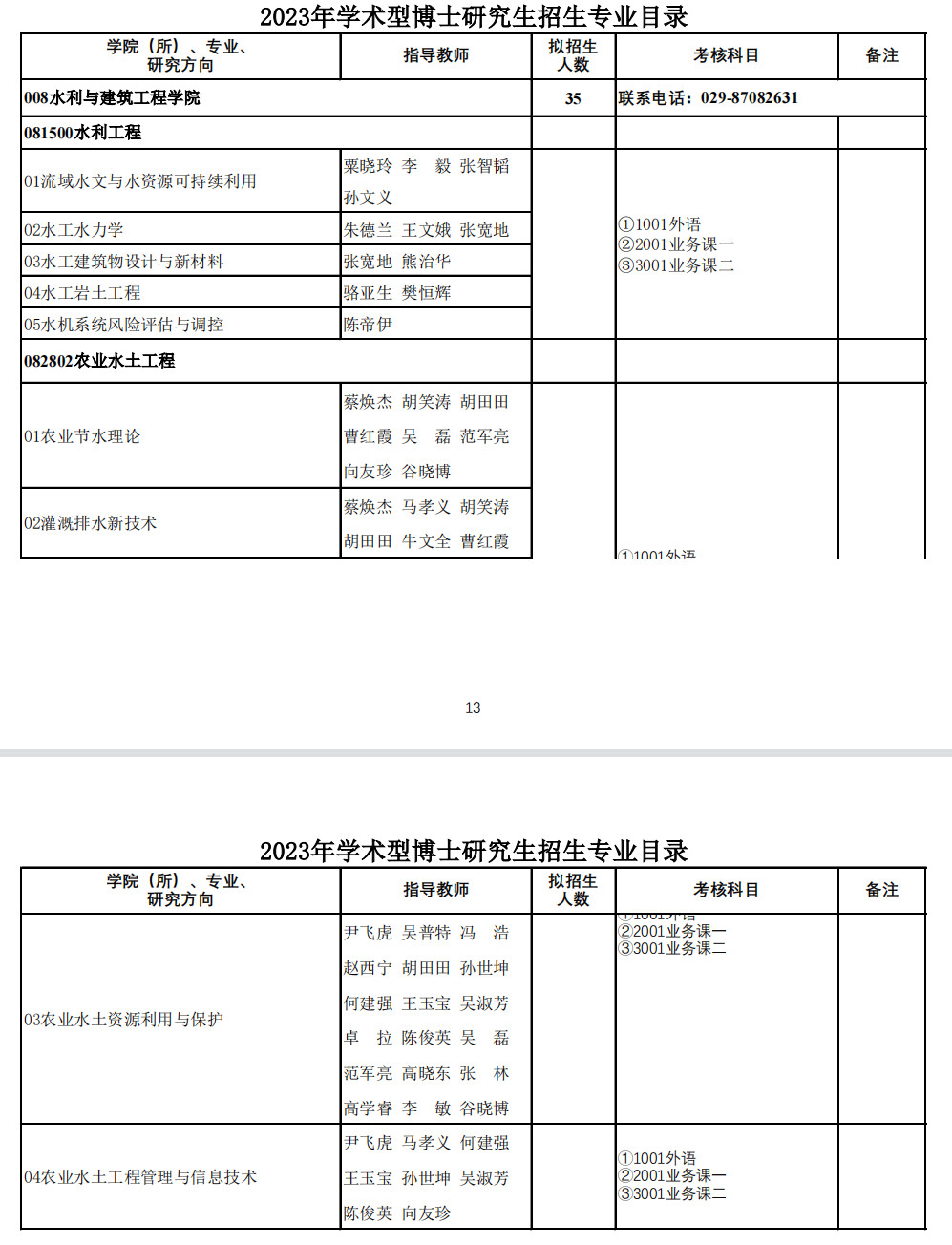 新祥旭考研:西北农林科技大学2023年水利与建筑工程学院博士研究生招生专业目录