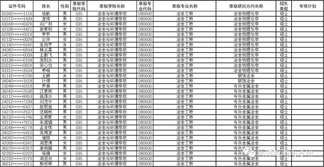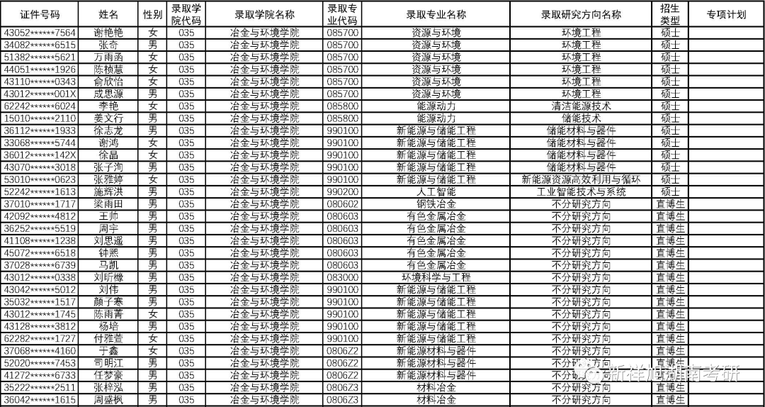 2023年中南大学冶金与环境学院拟录取推荐免试研究生名单公示