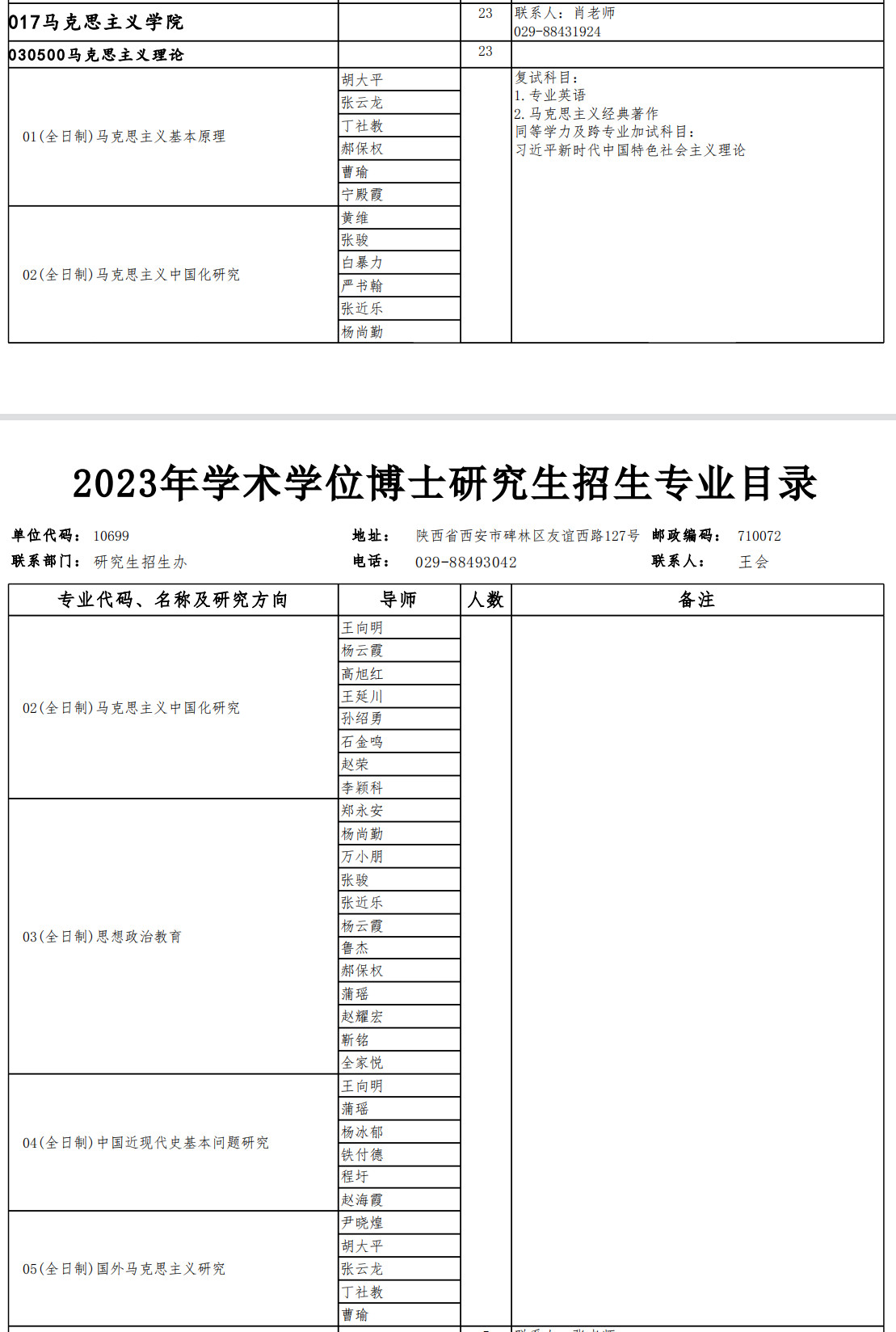 西北工业大学2023年马克思主义学院学术型博士研究生招生专业目录