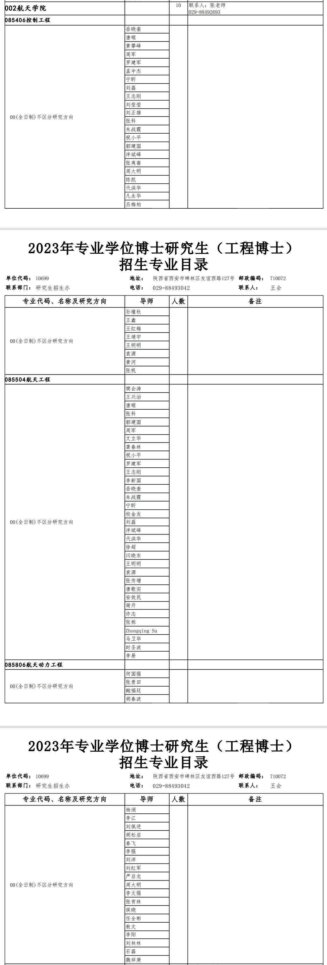 西北工业大学2023年航天学院专业学位博士研究生招生专业目录