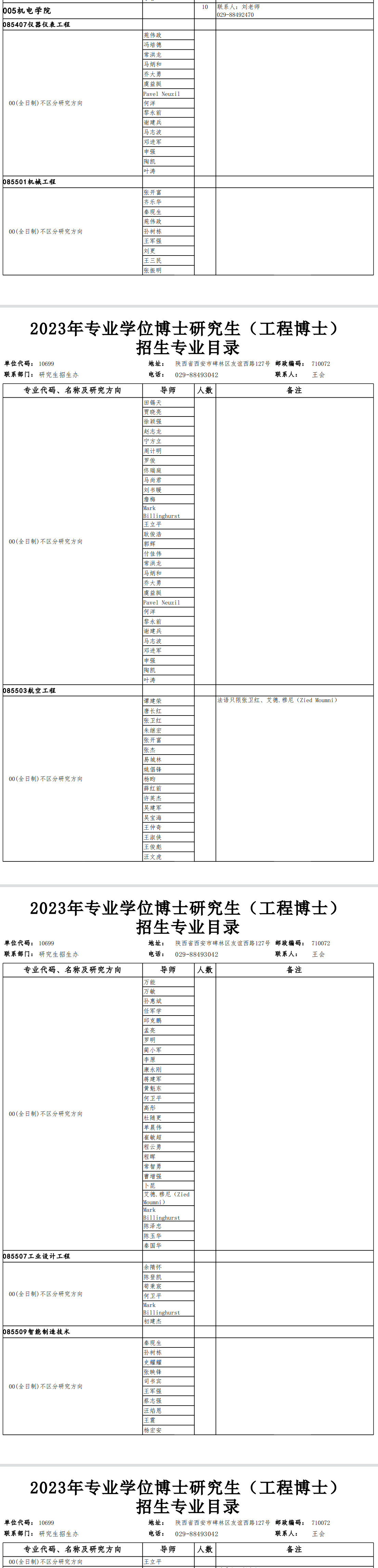 西北工业大学2023年机电学院专业学位博士研究生招生专业目录