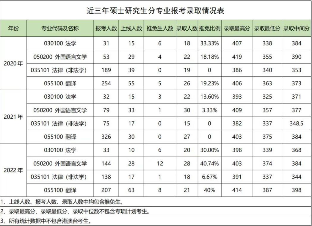 2020年--2022年一志愿进入复试的分数线均为国家线。