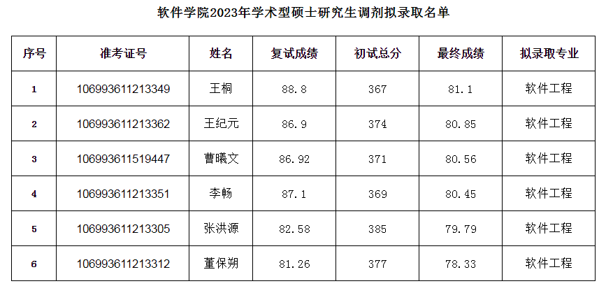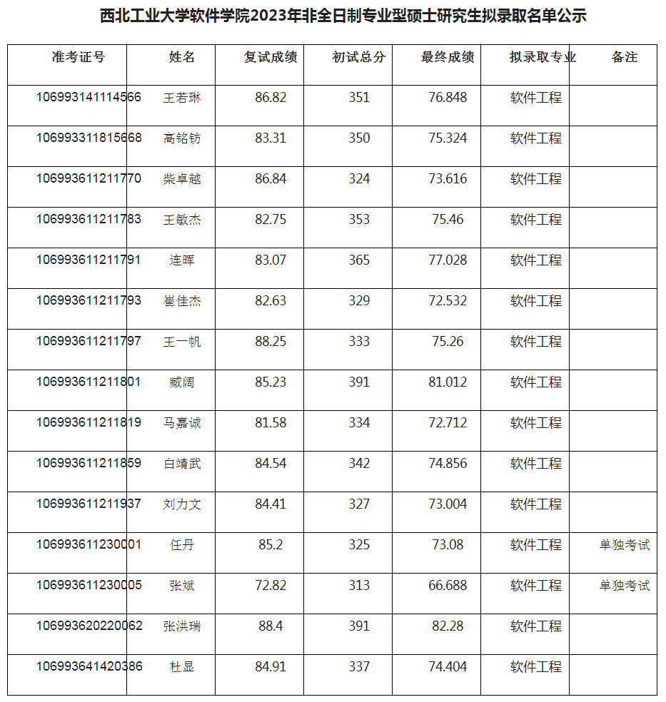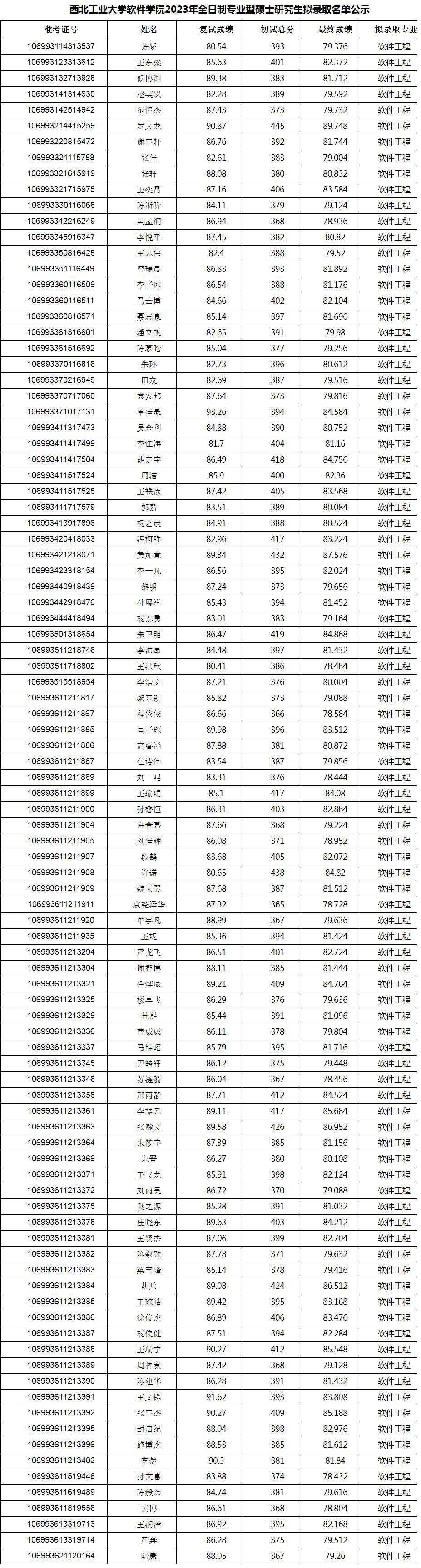 新祥旭考研:2023年西北工业大学软件学院硕士研究生拟录取名单