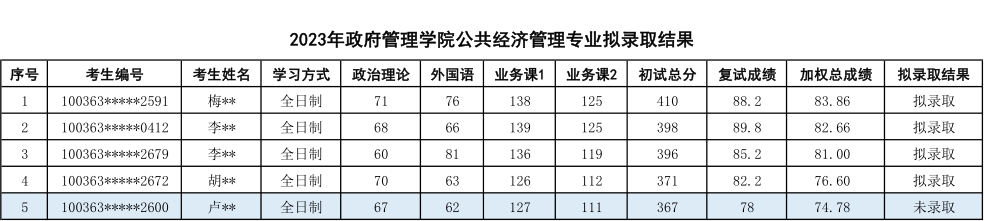 五、公共经济管理专业2023年考研进入复试的初试成绩基本要求