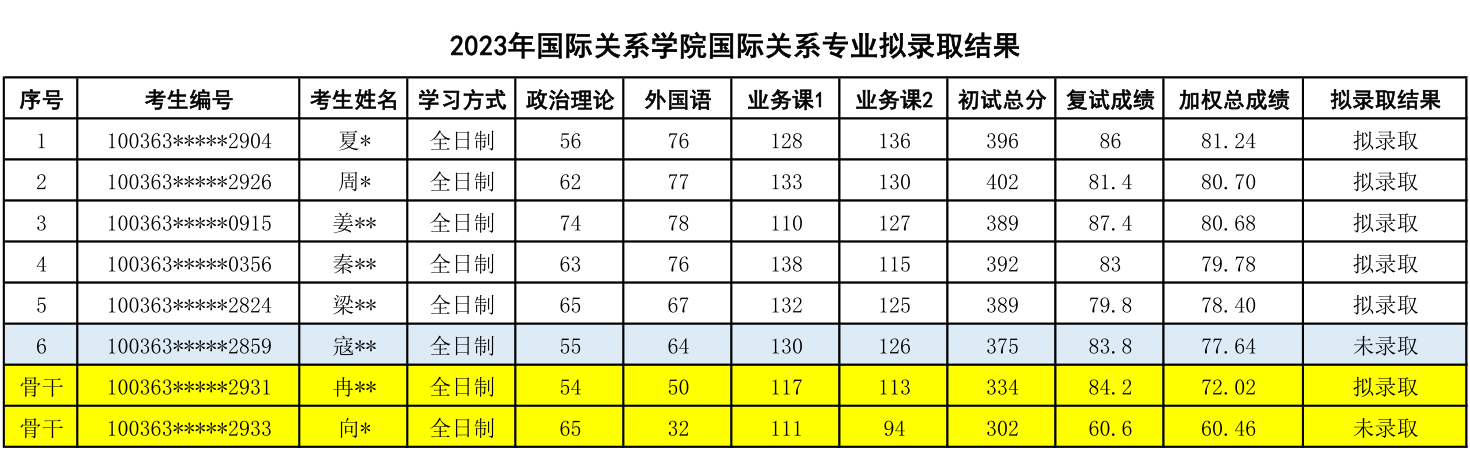 七、国际关系专业2023年考研拟录取结果