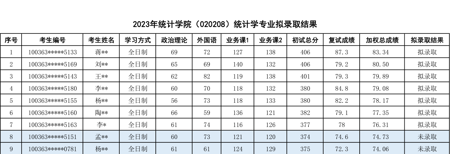 七、统计学(经济学)专业2023年考研拟录取结果