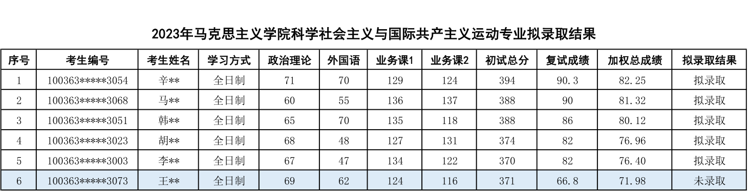 七、科学社会主义与国际共产主义运动专业2023年考研拟录取结果