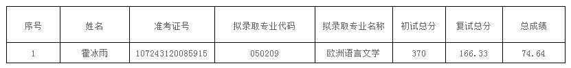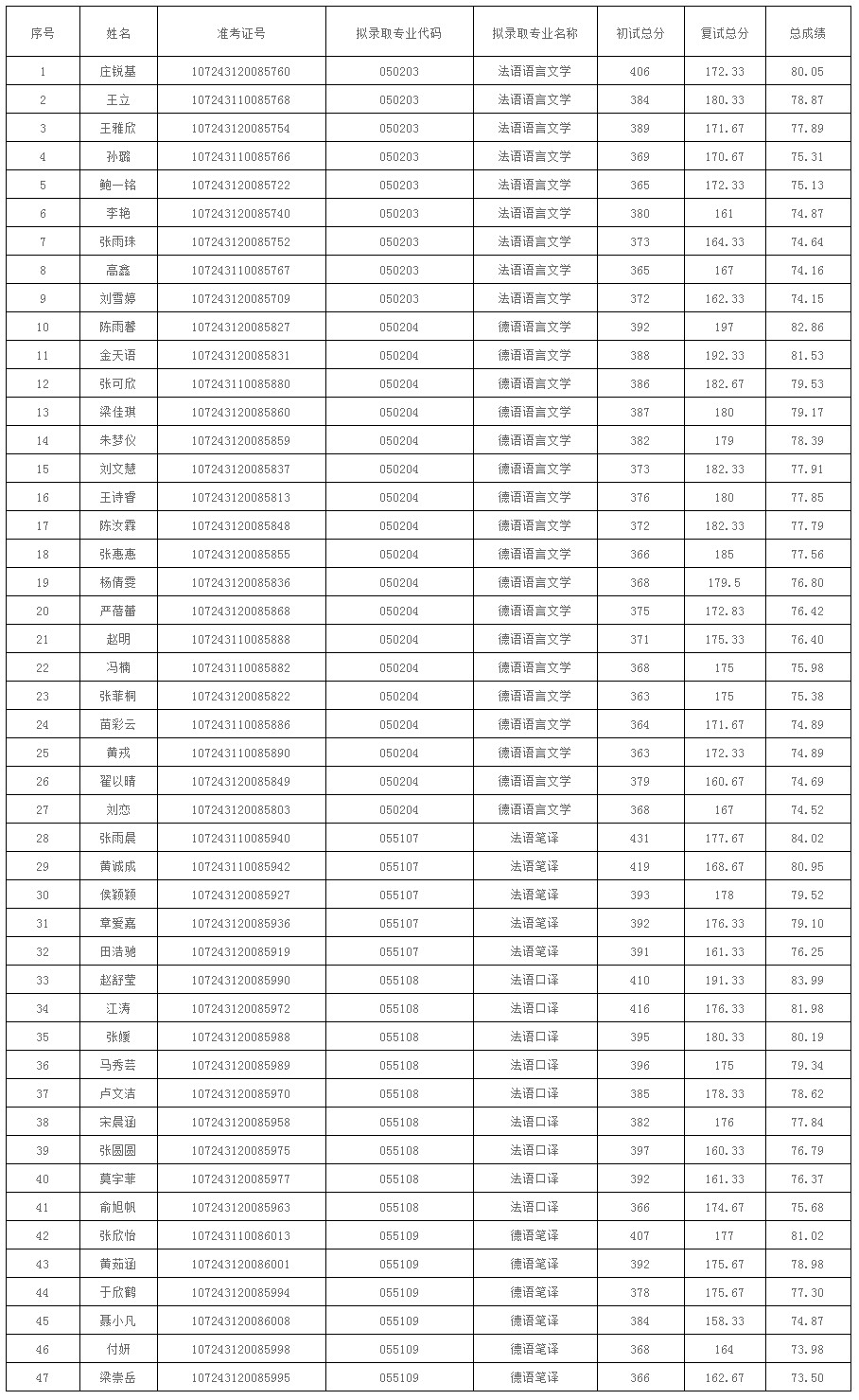 王**,法语语言文学,初试367,复试163.67,总分73.8