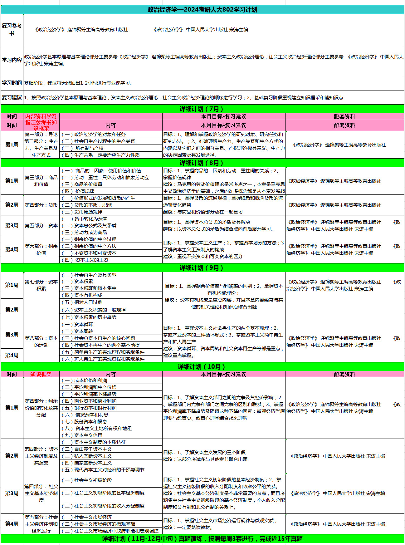 新祥旭考研:政治经济学—2024考研人大802学习计划