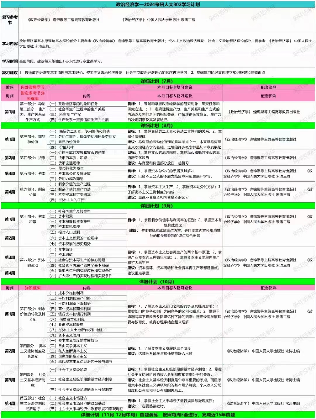 中国人民大学802经济学(政治经济学)2024年考研必看一对一辅导参考资料、考试题型、真题解析、复习规划、授课计划等汇总