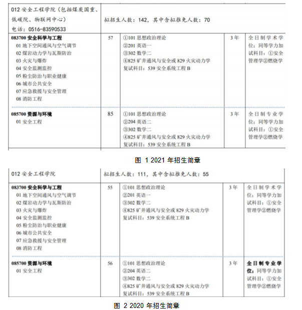 注:通过每年的矿大招生简章就可以直接查询每年的招生名额,招生名额主要由推免+考试统招所构成,如下图,但是每年实际收取的人数远比招生简章的收取人数较多,由于近些年硕士大量扩招的原因,专硕的人数录取远比学硕多,但由于政策的改变,现如今专硕和学硕并无区别,同样在矿大都可以申请考核读博。性价比来说:专硕远大于学硕。