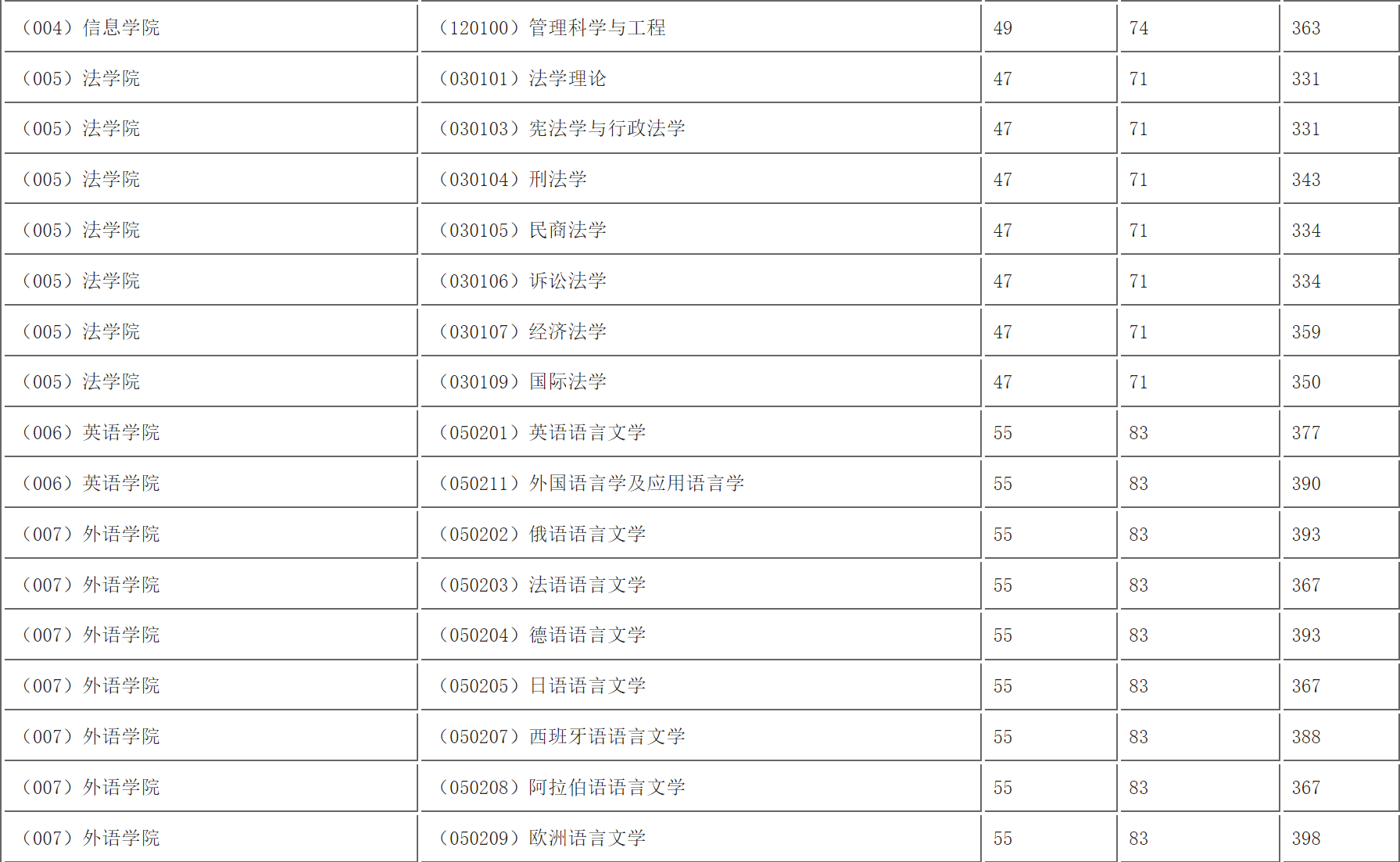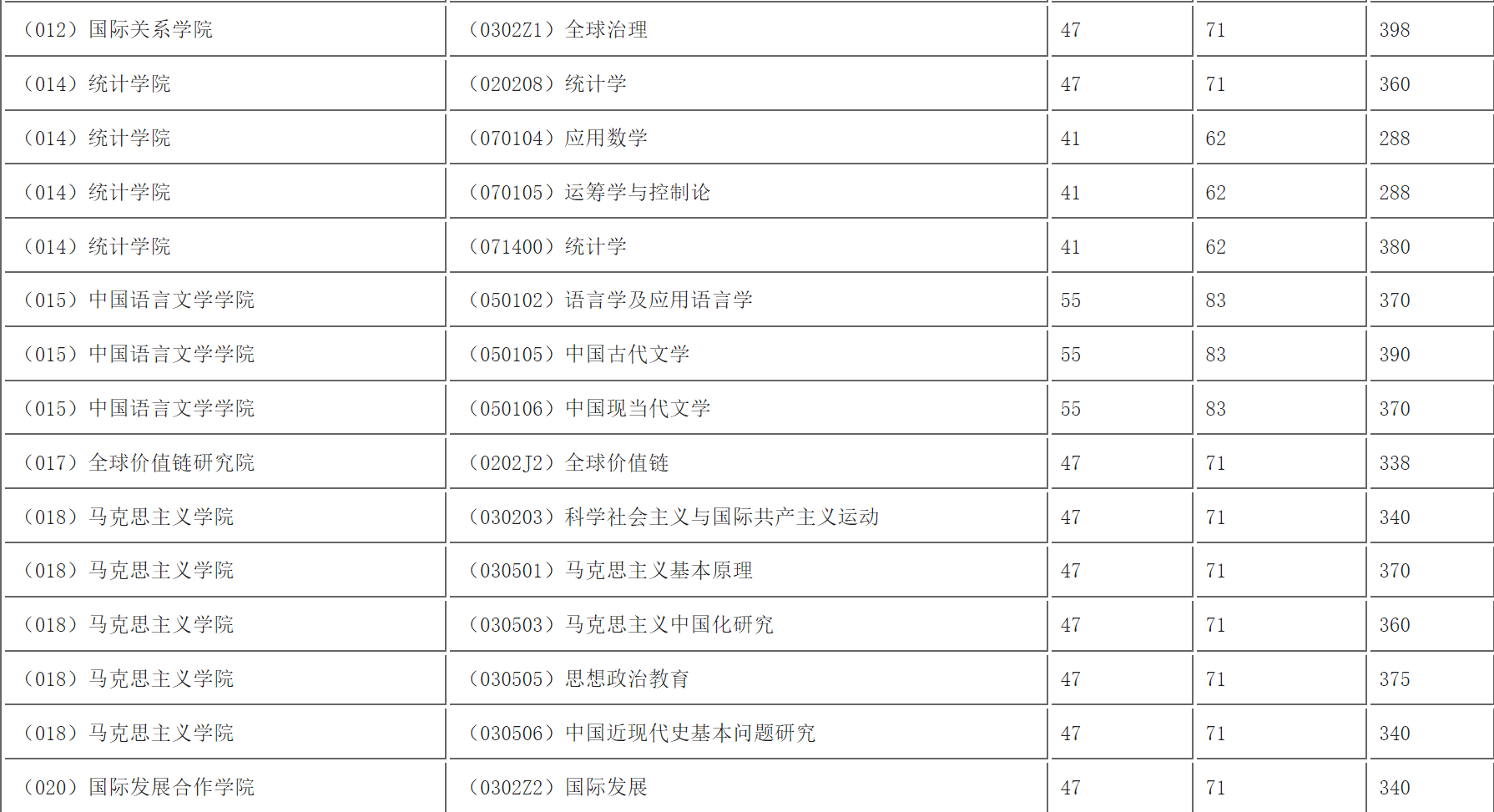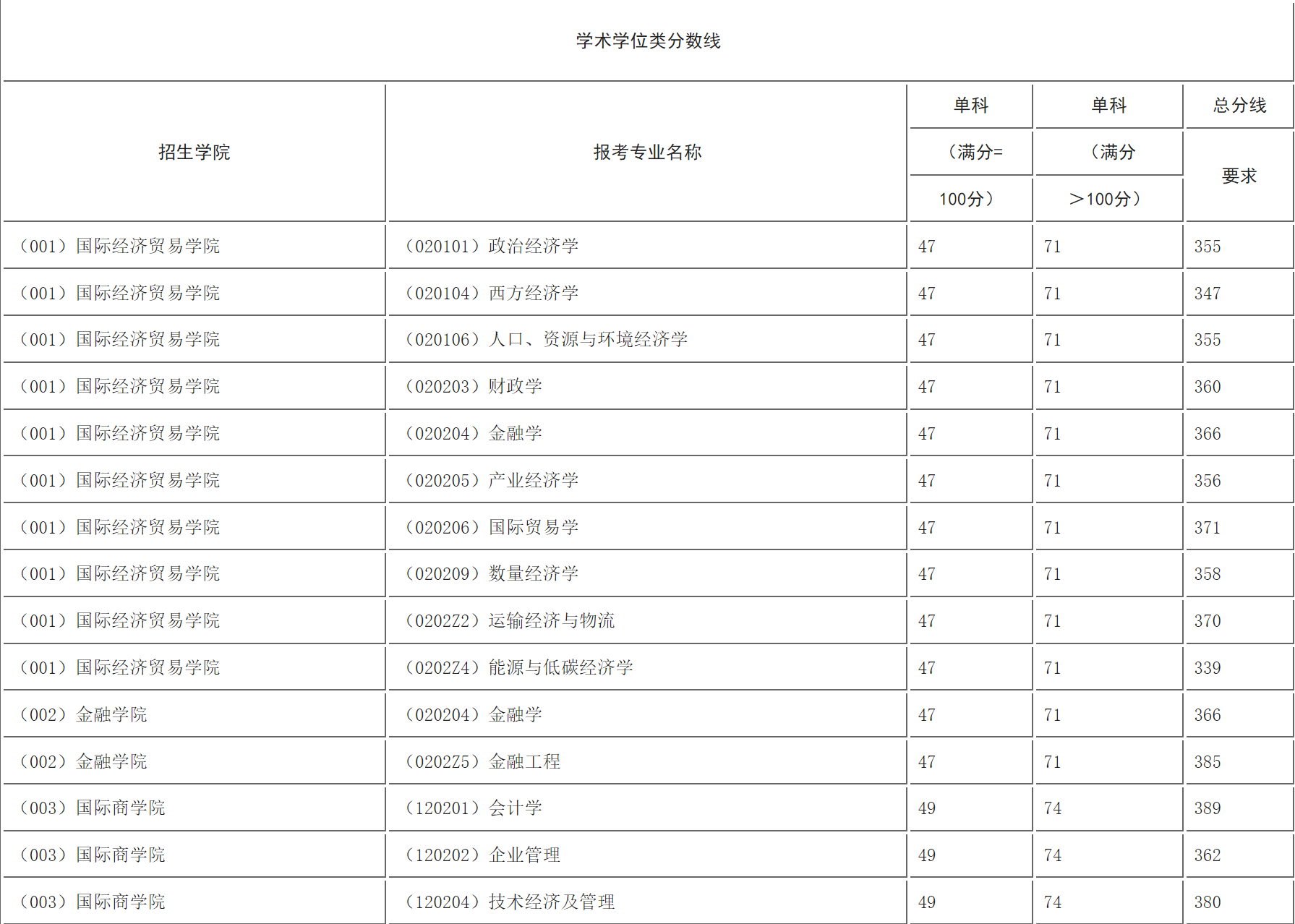 (一)考生进入复试的最低初试成绩基本要求
