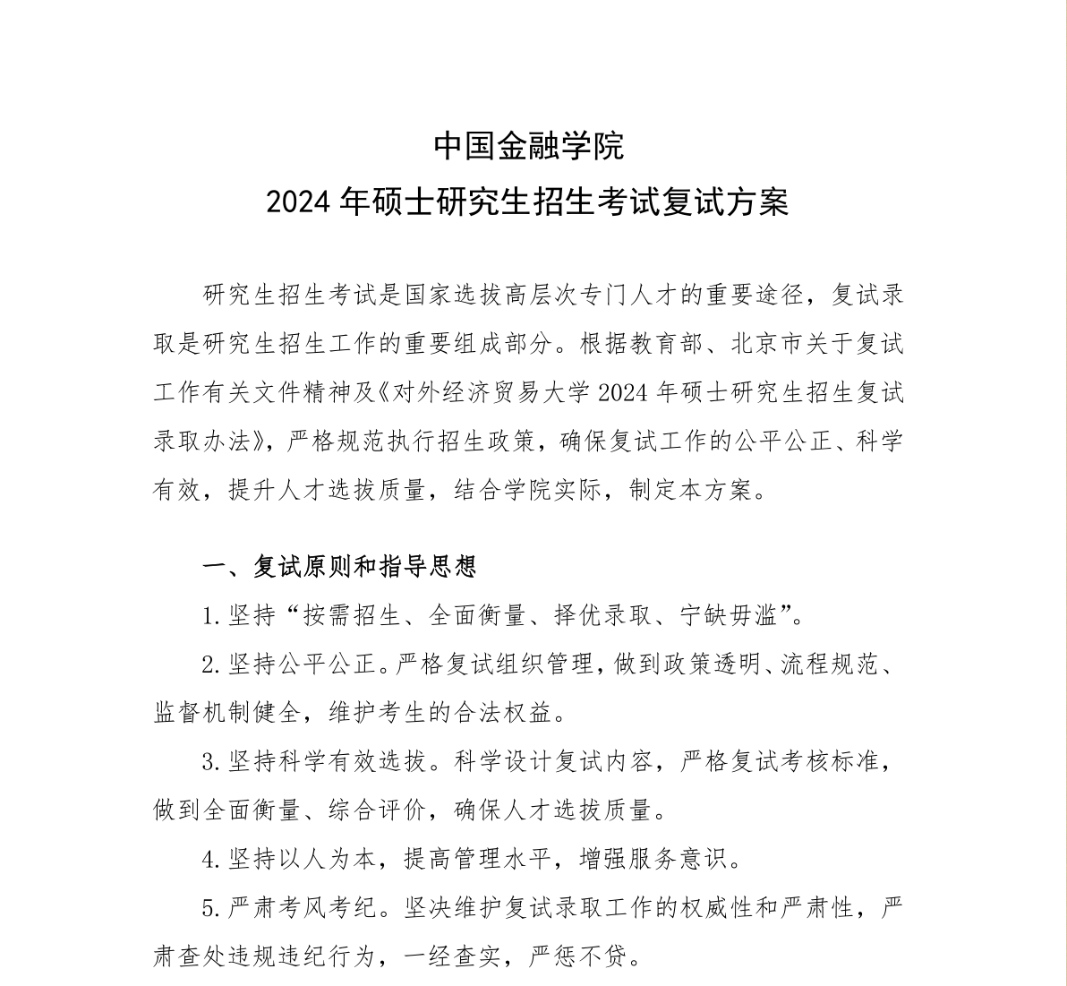 对外经济贸易大学中国金融学院2024年硕士研究生招生考试复试方案