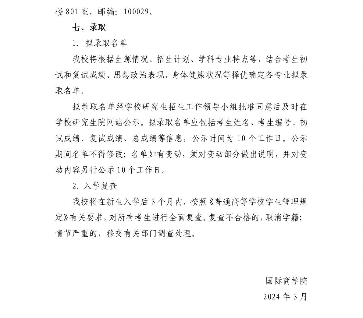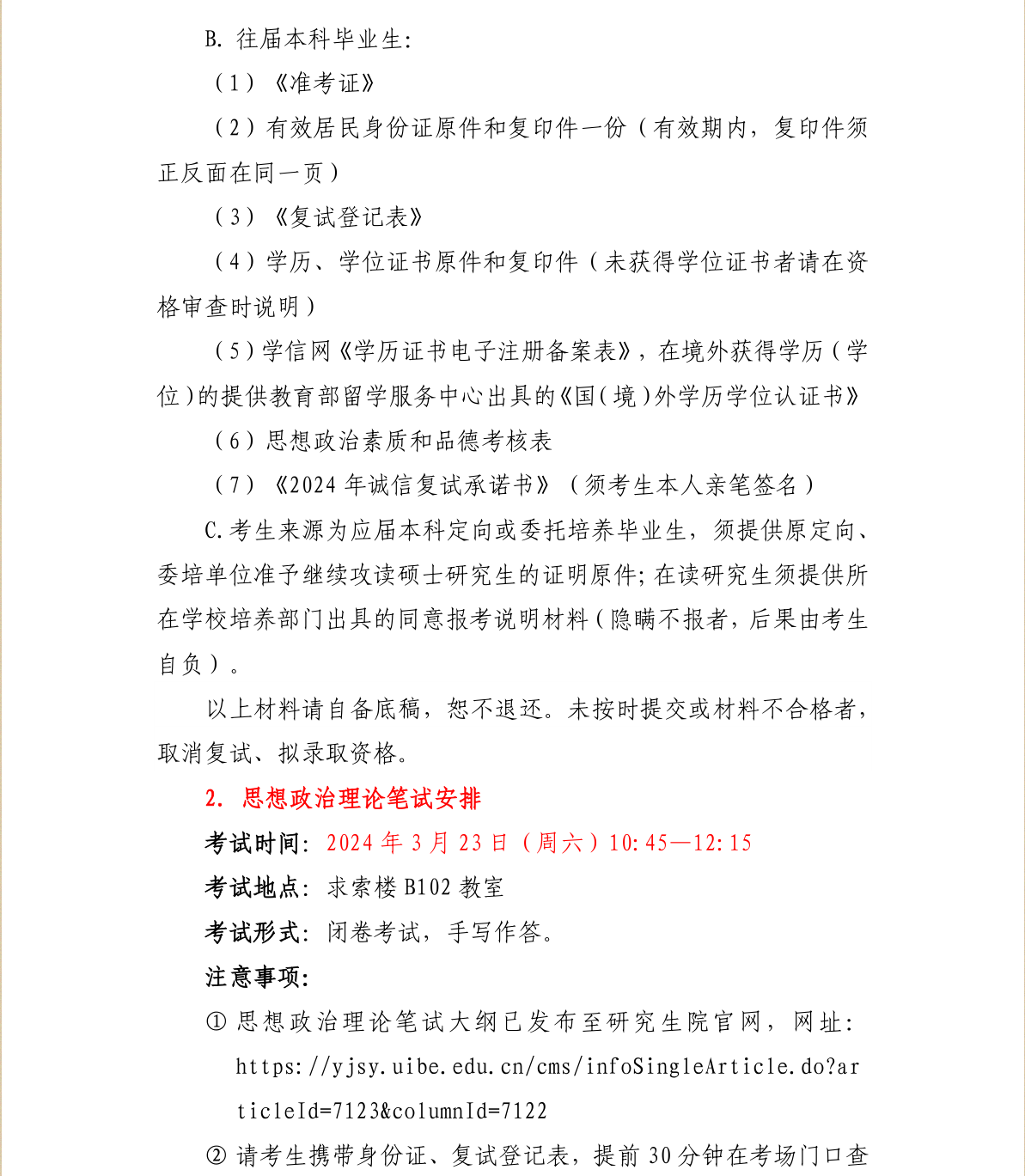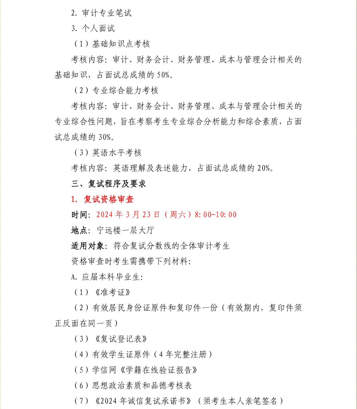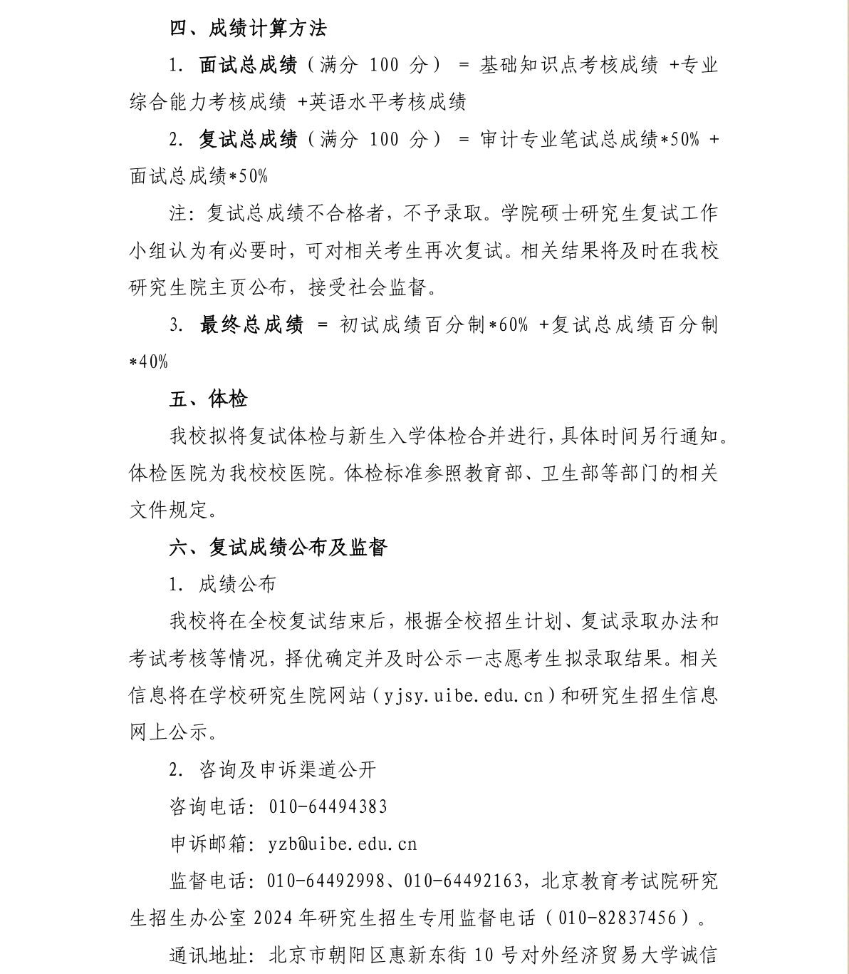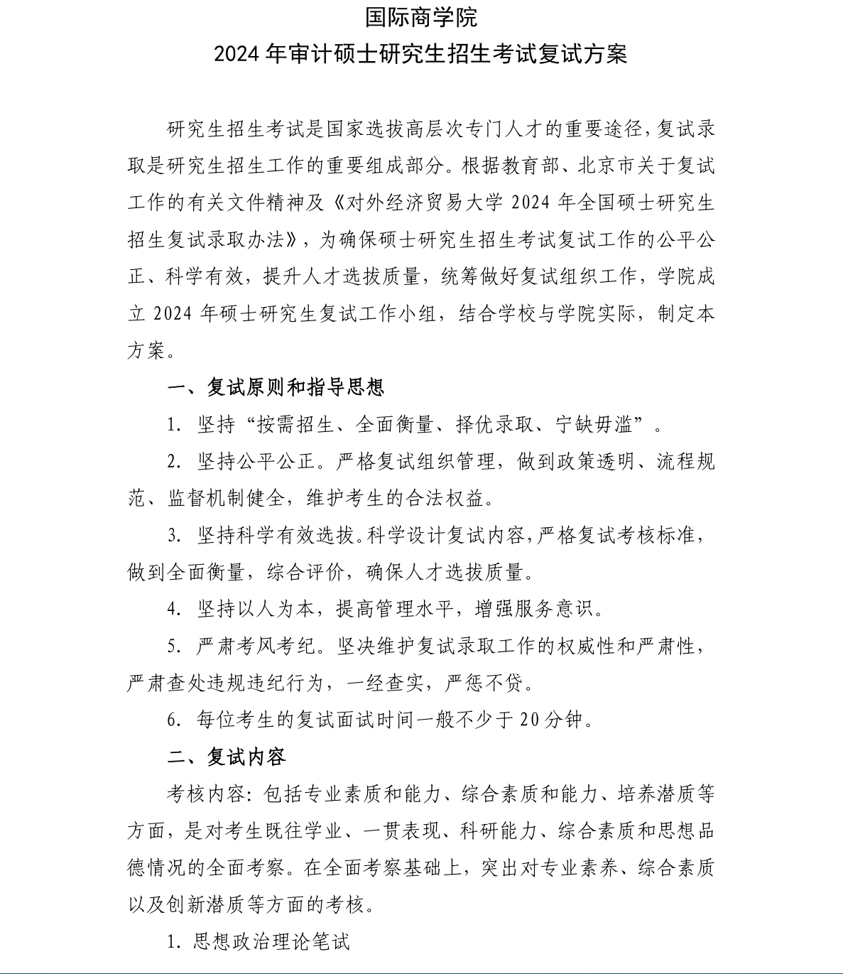 对外经济贸易大学国际商学院审计硕士(MAud)2024年硕士研究生招生考试复试方案