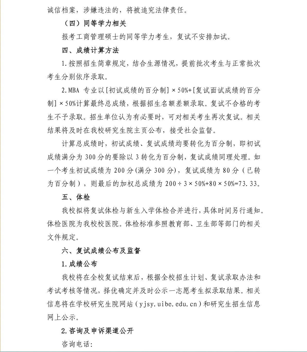 对外经济贸易大学国际商学院工商管理硕士(MBA)2024年硕士研究生招生考试复试方案
