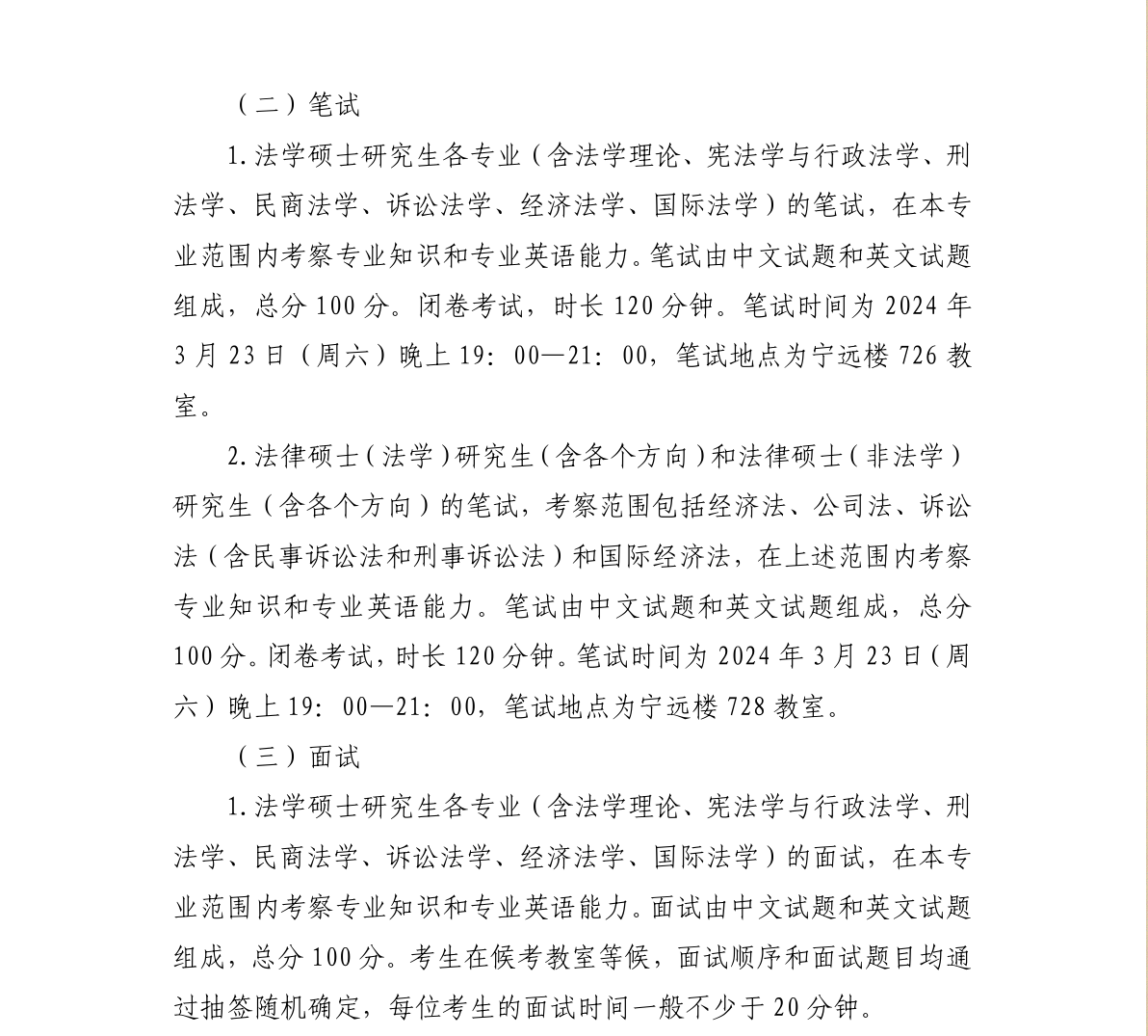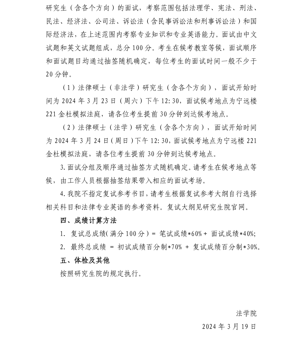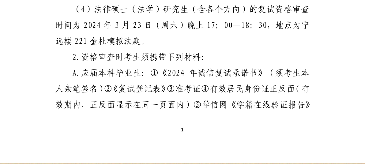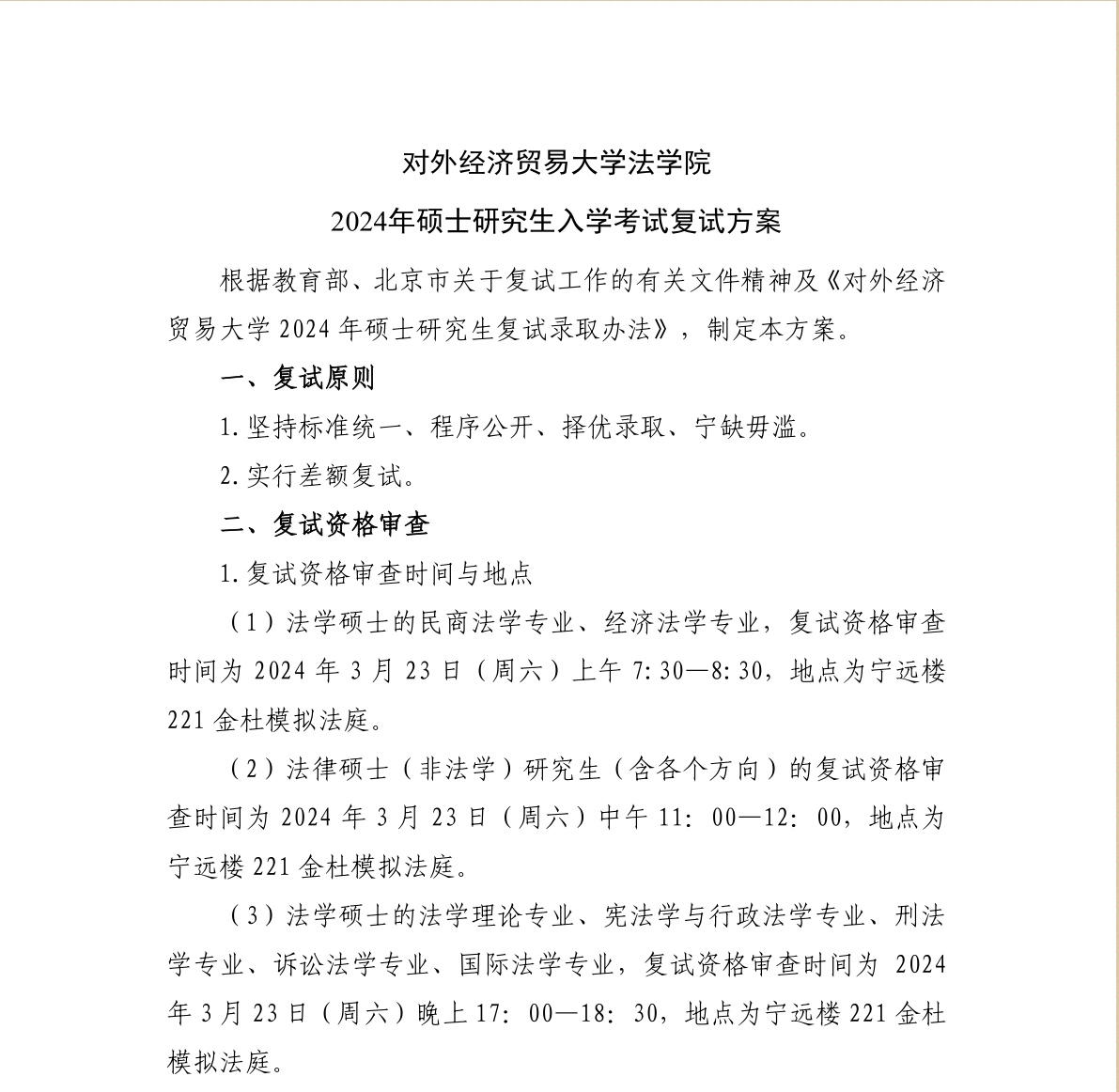 对外经济贸易大学法学院2024年硕士研究生招生考试复试方案