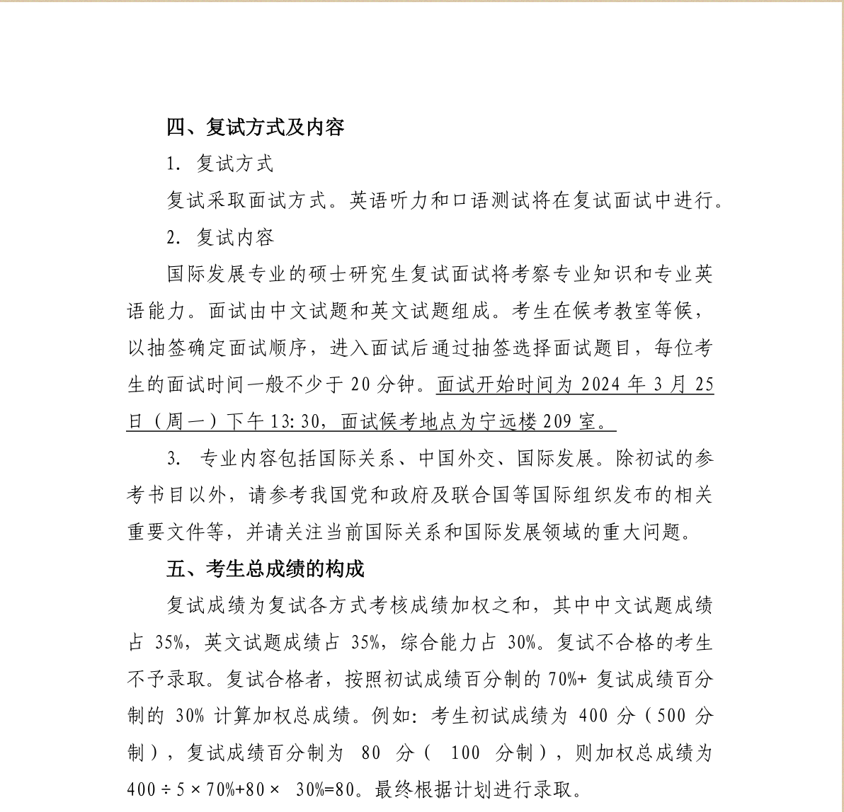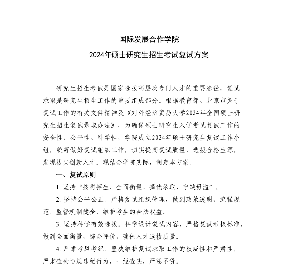对外经济贸易大学国际发展合作学院2024年硕士研究生招生考试复试方案