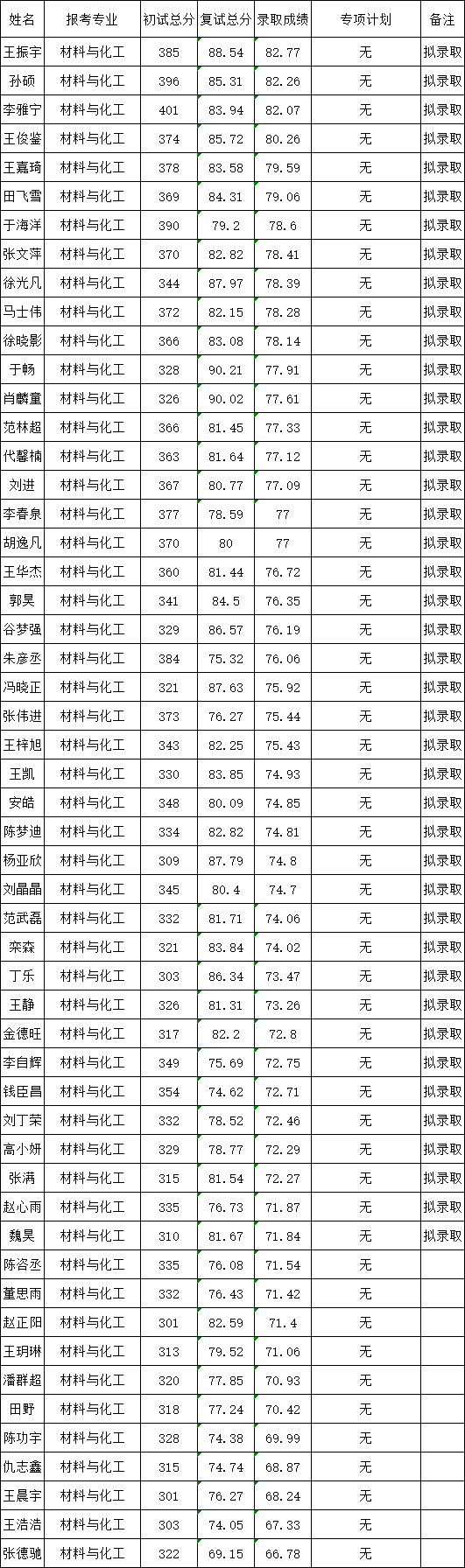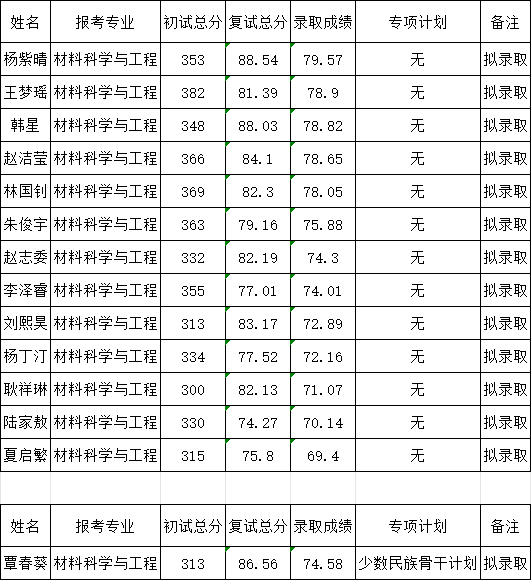 二、拟录取名单