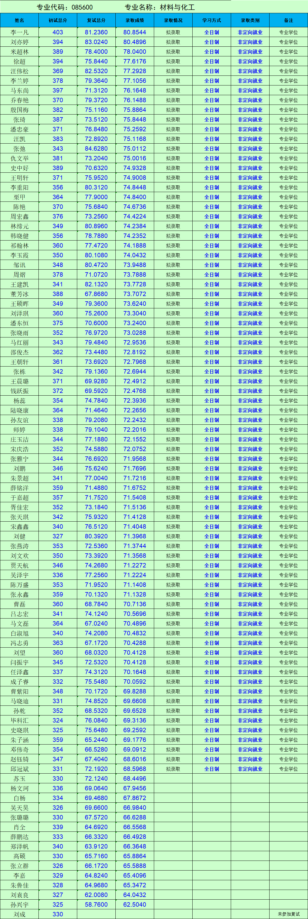 报考材料与化工专业的专业学位考生按本类型的最终总成绩进行排序,以排序的先后顺序来确定录取名次。