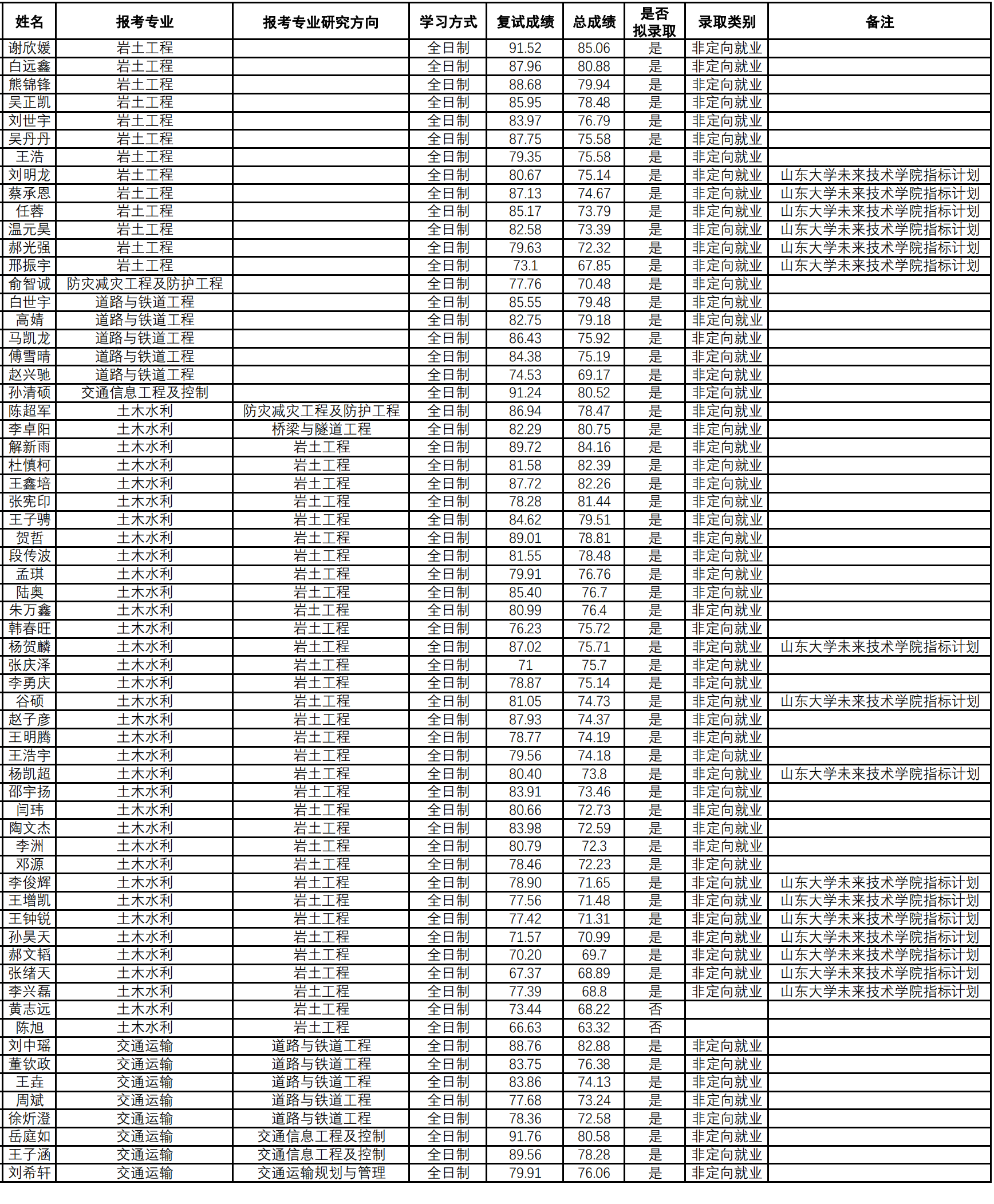 1.报考土木水利、交通运输的考生按照报考时选定的方向参加相应方向的复试。