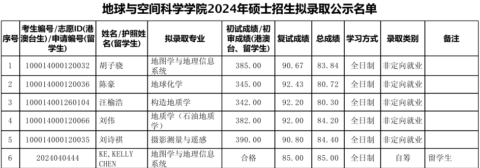 三、2024年北大地空学院录取名单