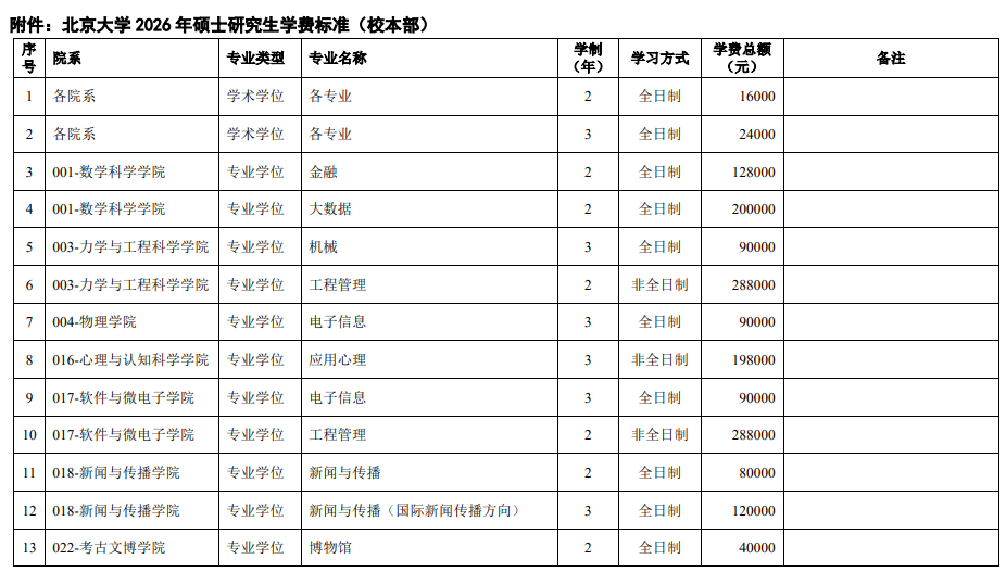 北京大学是一所拥有哲学、经济学、法学、教育学、文学、历史学、理学、工学、医学、管理学、艺术学、交叉学科等学科门类的综合性研究型大学。我校采用推荐免试和全国统一考试两种选拔方式招收全日制攻读硕士学位研究生,采用全国统一考试方式招收非全日制攻读硕士学位研究生。全日制和非全日制研究生招生考试依据国家统一要求,执行相同的政策和标准。 我校研究生招生工作坚持“服务战略、按需招生、全面衡量、择优录取、宁缺毋滥”的原则,积极推进专业学位与学术学位硕士研究生分类选拔,坚持公开、公平、公正,阳光招生。本招生简章针对北京大学燕园校区、新燕园校区(北京市昌平区)、软件与微电子学院(北京市大兴区)和深圳研究生院(深圳)(以下简称校本部),医学部招生简章另行单独公布。2026年校本部招生院系、专业、计划和有关要求详见《北京大学2026年硕士研究生招生专业目录》。 一、推荐免试 根据教育部研究生招生工作的有关规定,我校通过推荐免试方式接收全国优秀应届本科毕业生攻读硕士学位研究生,相关事项详见《北京大学2026年接收推荐免试研究生办法(校本部)》。 二、全国统一考试 (一)报考条件 1.报名参加全国硕士研究生招生考试的人员,须符合下列条件: (1)中华人民共和国公民。 (2)拥护中国共产党的领导,遵纪守法,品德良好。 (3)身体健康状况符合国家和我校规定的体检要求。 (4)考生学业水平必须符合下列条件之一,本款另有规定的除外: ①国家承认学历的应届本科毕业生(含普通高校、成人高校、普通高校举办的成人高等学历教育等应届本科毕业生)及自学考试和网络教育届时可毕业本科生。 ②具有国家承认的大学本科毕业学历的人员。 ③获得国家承认的高职(专科)毕业学历后满2年及以上人员(毕业后到录取当年入学前,下同)或国家承认学历的本科结业生,按本科毕业同等学力 身份报考。 以同等学力身份报考我校的考生,须在国家核心期刊上发表一篇(含)以上与所报考专业相关的学术论文(以第一作者或第二作者)。 ④已获硕士、博士研究生学历或学位的人员。 我校不允许研究生同时拥有两个及以上学籍。在读研究生报考须在报名前征得所在培养单位同意,复试通过,并从所在培养单位退学后,方可获得我校拟录取资格。 2.报名参加法律(非法学)、法律(法学)专业学位硕士研究生招生考试的人员,须符合下列条件: (1)符合(一)报考条件第1条中的各项要求。 (2)报考法律(非法学)的考生,报考前所学专业为非法学专业。报考法律(法学)的考生,报考前所学专业为法学专业(获得法学第二学士学位的人员可以报考)。 3.报考工商管理、公共管理、工程管理的,须符合下列条件: (1)符合(一)报考条件第1条中第(1)-(3)各项的要求。 (2)本科毕业后有3年以上工作经验;或获得国家承认的高职(专科)毕业学历或本科结业后,达到本科毕业同等学力并有5年以上工作经验;或获得硕士、博士研究生学历或学位后有2年以上工作经验。 工商管理专业学位硕士研究生相关考试招生政策同时按照《教育部关于进一步规范工商管理硕士专业学位研究生教育的意见》(教研〔2016〕2号)有关规定执行。 高级管理人员工商管理(EMBA)报考条件及相关要求见《北京大学2026年高级管理人员工商管理(EMBA)专业学位硕士研究生招生简章》。 (二)报名 1.考生须严格按照北京大学研究生招生网(网址:https://admission.pku.edu.cn,以下简称北大研招网)公布的《北京大学2026年硕士研究生招生简章(校本部)》、《北京大学2026年硕士研究生招生专业目录》和《2026年全国硕士研究生招生考试北京大学(10001)网报公告》的相关要求进行报考。有关招生院系、专业、学习方式、选拔方式、招生人数、考试科目及相关说明(含备注)以招生专业目录为准。 2.考生应当认真了解并严格按照报考条件及相关政策要求选择填报志愿。因不符合报考条件及相关政策要求,造成后续不能网上确认、考试(含初试和复试)或录取的,后果由考生本人承担。 3.考生应当按要求如实填写个人学习情况等网上报名信息并提供真实材料。考生因网报信息填写错误、填报虚假信息而造成不能考试(含初试和复试)或录取的,后果由考生本人承担。 4.考生应在规定时间登录“中国研究生招生信息网”(网址:https://yz.chsi.com.cn,以下简称中国研招网)认真阅读报考须知,并按教育部、省级教育招生考试机构、报考点以及北京大学的公告要求报名。报名截止日期前,考生可随时修改本人的网上报名信息或重新填报报名信息,但每位考生只能保留一条有效报名信息。逾期不得修改报名信息。 5.报名包括网上报名和网上确认两个阶段,任一阶段未完成,报名无效。所有考生均须在规定时间内完成网上报名和网上确认,逾期不再补办。 6.报名期间网报系统将对考生所填学历(学籍)等信息进行网上校验,考生应按照我校报名公告的要求及时查看学历(学籍)等校验结果并根据核验工作要求提交补充材料,逾期不得补办。 7.网报结束后,我校将对有效报名信息进行准考资格审查。经我校确认准考的考生应在考前十天左右,凭网报用户名和密码登录中国研招网下载、打印《准考证》。《准考证》使用A4幅面白纸打印,正、反两面在使用期间不得涂改或书写。考生凭下载打印的《准考证》及有效居民身份证参加初试