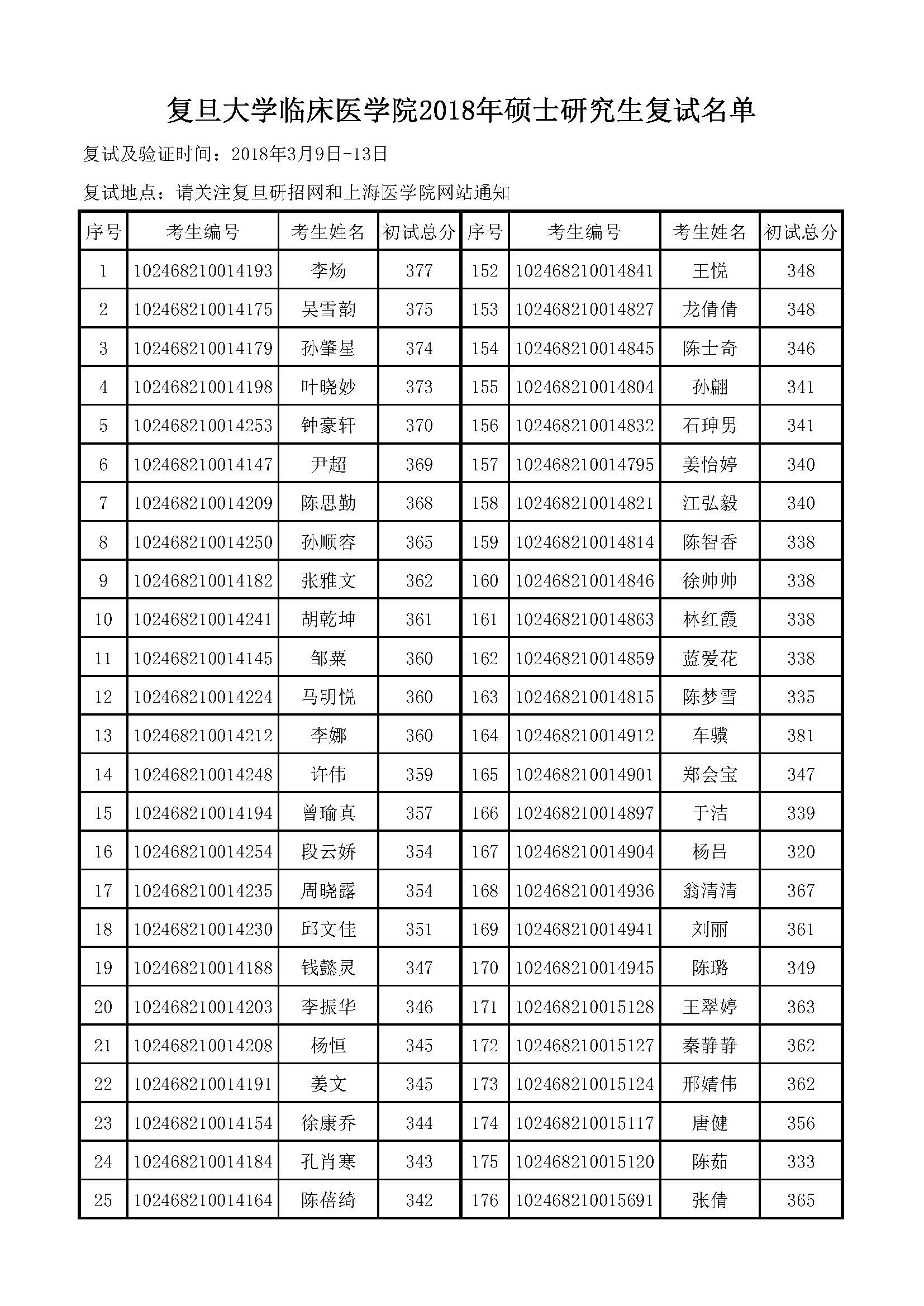 复旦大学脑科学研究院2018年硕士研究生入学考试复试细则及复试名单